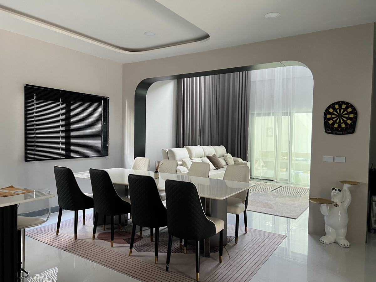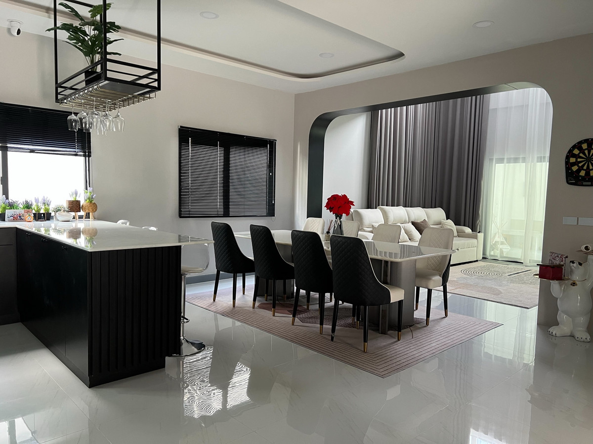 House for sale The city bangna (new project) only 800 meters from Mega bangna price 22,500,000 (transfer fee is half Usable area 330 square meters Area 76 square meters Facing south The parking roof has been added House type : Dione 🛌4 bedrooms 🛁5 bathrooms 🐱1 multi-purpose room (addition + pile installed) 👩🏻🍳1 Kitchen 👵🏻1 Maids room + en-suite bathroom 🚗3 Parking ✅Digital door lock, electric gate With smart home system ✅2 CCTV points ✅Fully decorated, ready to move in Furniture+Built-in ✅2 4-way ceiling mounted air conditioners (living room, Master bedroom) 4 wall mounted air conditioners ✅Walk-in closet Master bedroom ✅2 TVs, 1 refrigerator, 1 washing machine+dryer, 2 water heaters, master bedroom water heater, 8 seat dining table, reclining sofa, curtains throughout the house. , and many others, complete and worth it If interested, contact. Make an appointment to view the house at * what app / mobile : Contact number * Lind : https://line.me/ti/p/KAhc3oE2K * More options please click the link below * https://www.facebook.com/profile.php?id= Contact number