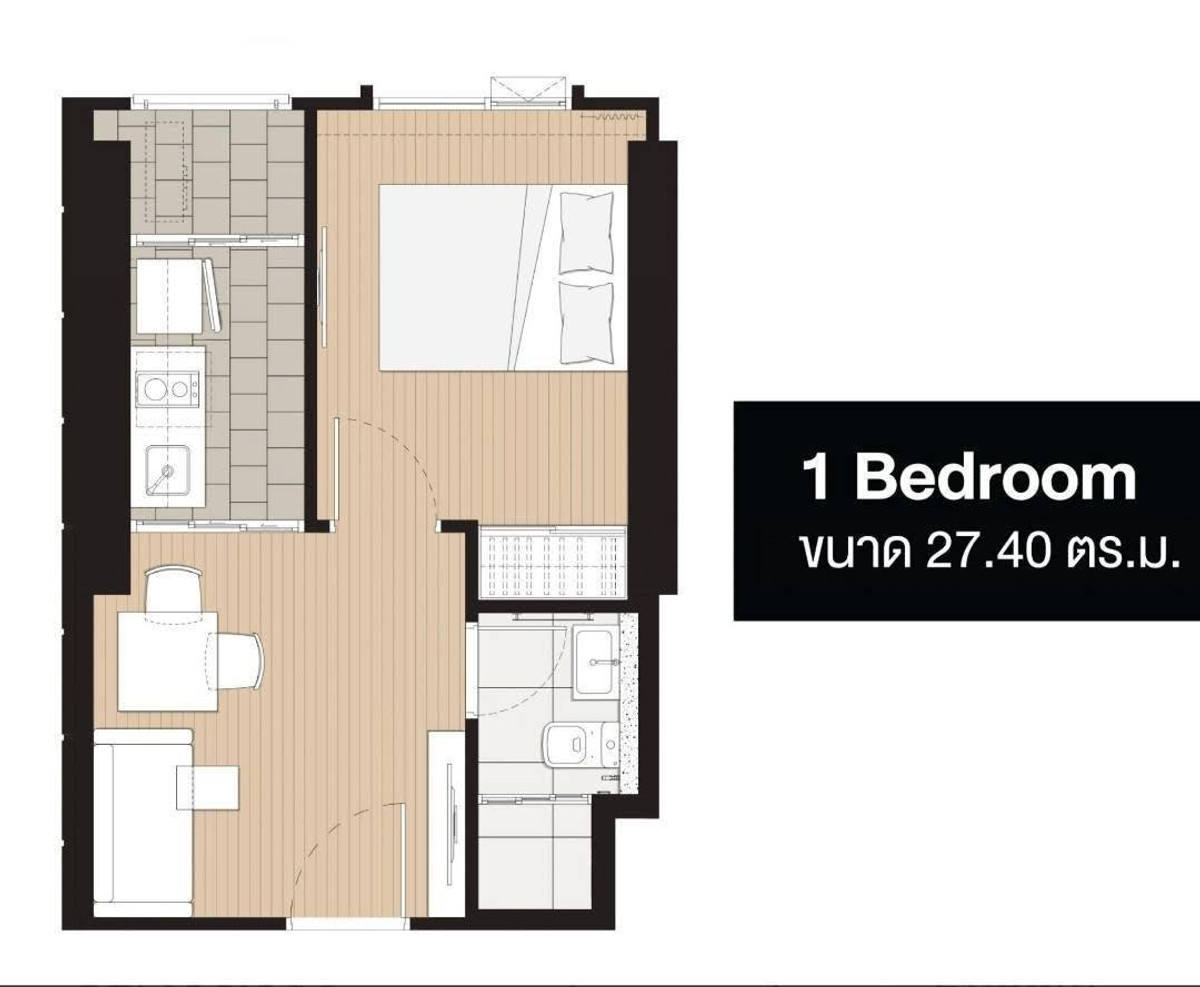 🚩Denim Chatuchak, room 28 sq m, divided into 1 bedroom, 1 living room, kitchen, full common area🚩