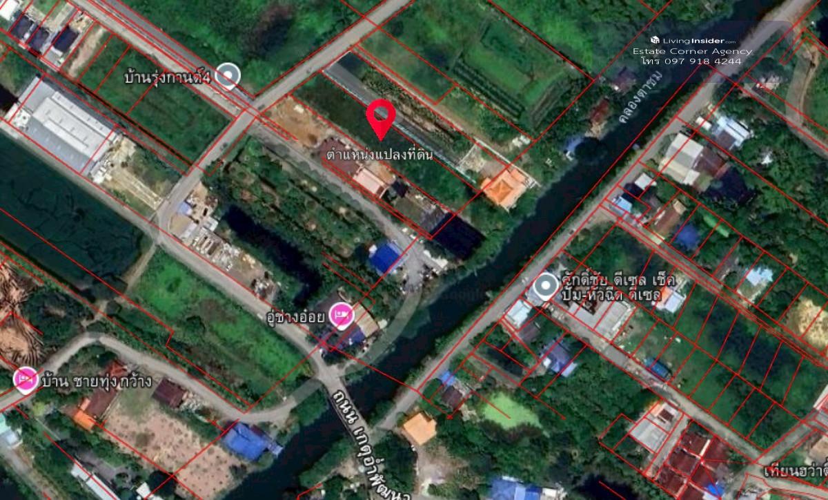 (Location): Yothathikarn Road, Nonthaburi, Wat Ton Chueak - Wat Masong - Saphan School Klai Son Features: Rectangular land. Facing south Next to Public Works Road, Nonthaburi, Wat Ton Chueak-Wat Masong-Klai Son School Bridge. The back is next to Khlong Ta Chom Listing no. 94878 Property Details Property Detail: - Size 1 rai 1 ngan 58 sq m - Beautiful plot shape, rectangular - Usable area 2,232 sq m - Land front next to Public Works Road, Nonthaburi, Lat Pladuk-Khlong Ta Chom Road - The back is next to Ta Chom Canal - near the community area, suitable for building for living. or for future investment nearby places Location: - MaxValu Wat Lat Pladuk -Tesco Lotus Bang Kruai-Sai Noi -Big C Extra Bang Yai -IKEA Bang Yai -Central Westgate - Makro Bang Bua Thong - Do Home Bang Bua Thong -Pimonrat Hospital -Kasemrad Hospital International Rattanathibet - Purple Line MRT Khlong Bang Phai Station Location and transportation Travel: -Road along Khlong Ta Chom -Bang Kruai-Sai Noi Road -Rattanathibet Road -Kanchanaphisek Road -Ratchaphruek Road -Chaiyaphruek Road Brain: MRT (Khlong Bang Phai Station) - Enter the alley on Wat Lat Pla Duk Road. Turn onto Ket Um Phatthana Road. Road along Khlong Ta Chom Yothathikarn Road, Nonthaburi - opposite Ratirat Village #Location >>> 13°55'46"N 100°20'17"E *** Price 5,500,000 baht *** Can make an appointment to visit the actual location every day. If interested, price can be negotiated Interested contact: Wanida Jitcheun (Lukpla) Mobile number: Contact number Line Id: lukpla1972 E-mail: Contact email Contact Estate corner Agency Tel. Contact number Line Id @estatecorner E-mail Contact email Estate corner Agency accepting deposits, buying-selling all types of real estate. Free advertising fees, happy to provide loans for free EstateCornerAgency.com