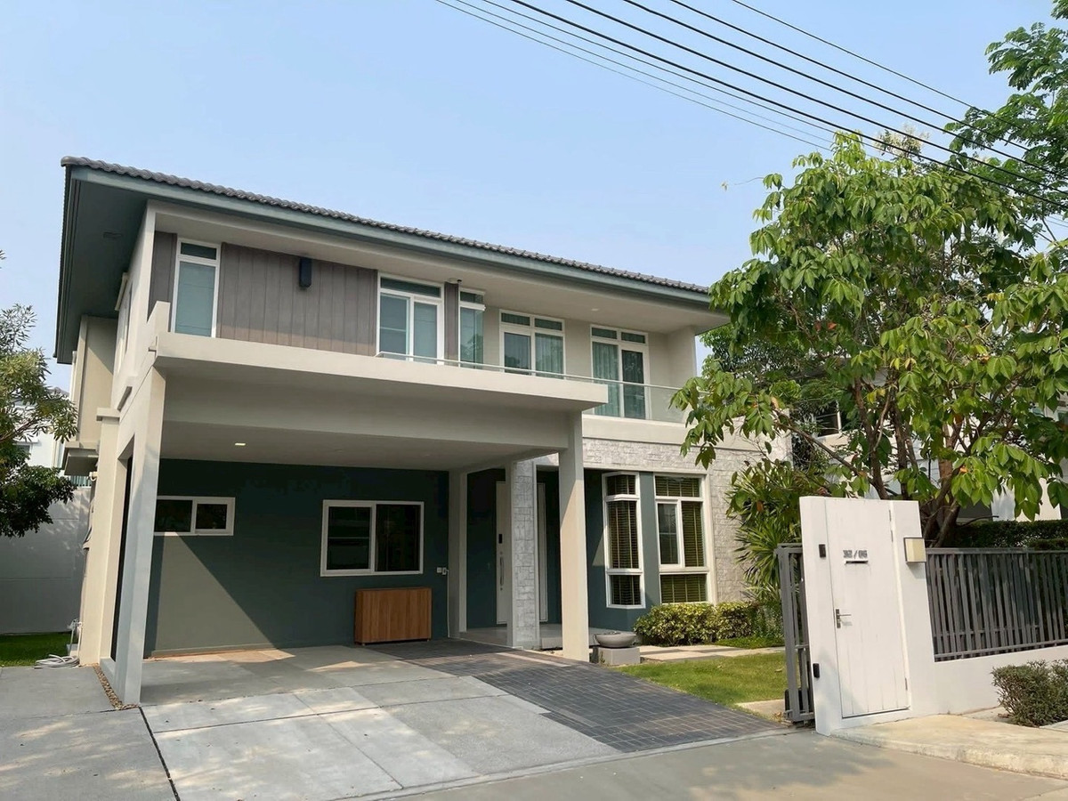 Manthana Bangna-Wongwaen Village Rental price 140,000 baht/month House type size M 2-storey detached house (1st hand) 76.5 sq m Usable area 222 sq m 4 bedrooms 5 bathrooms 1 maids room + separate bathroom 1 Thai kitchen Garage in front of the house (3 cars) Highlights: Facing south. Live comfortably system AirPlus2 For more information: Line : @sheserved 📞 Contact number (Punn) 📞 Contact number (Anew)