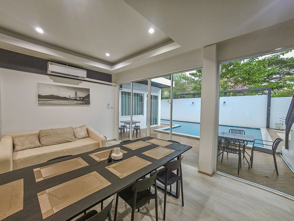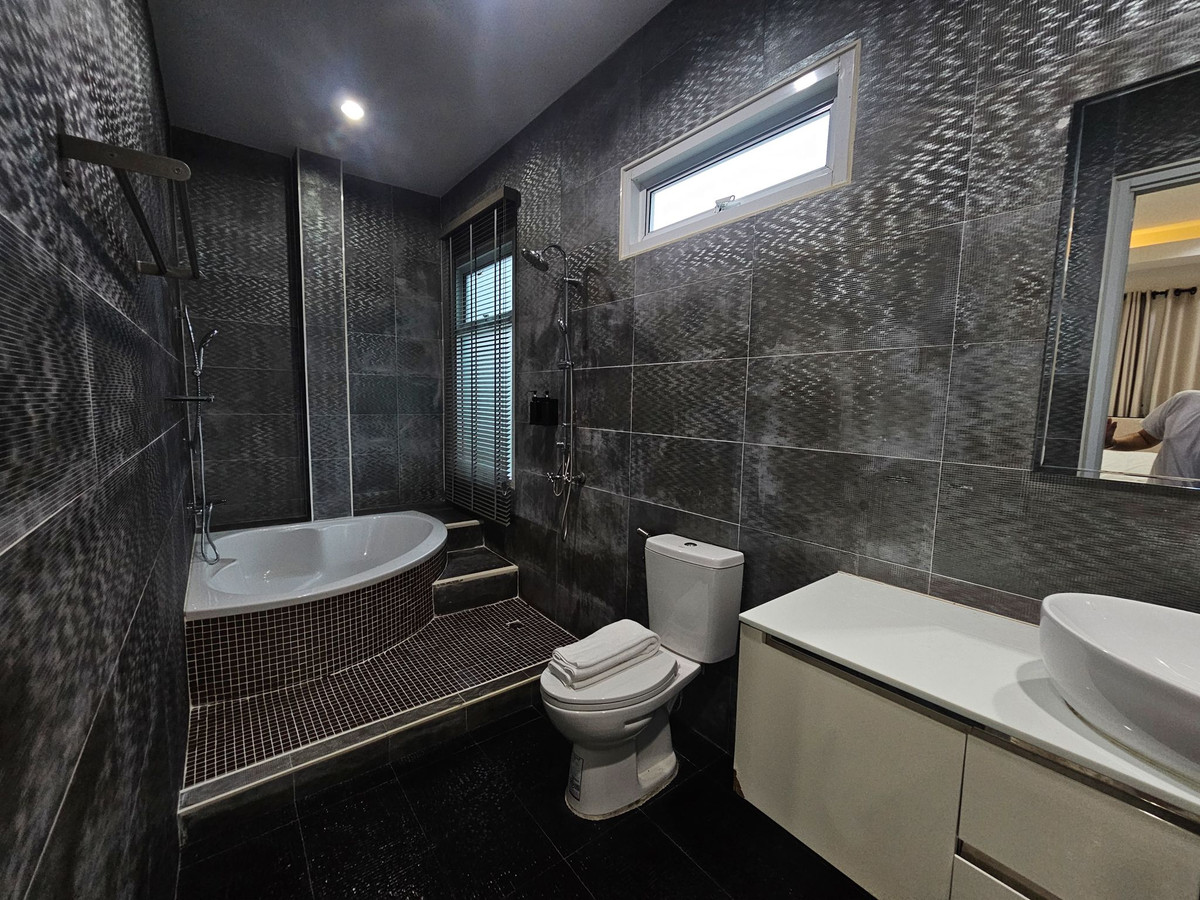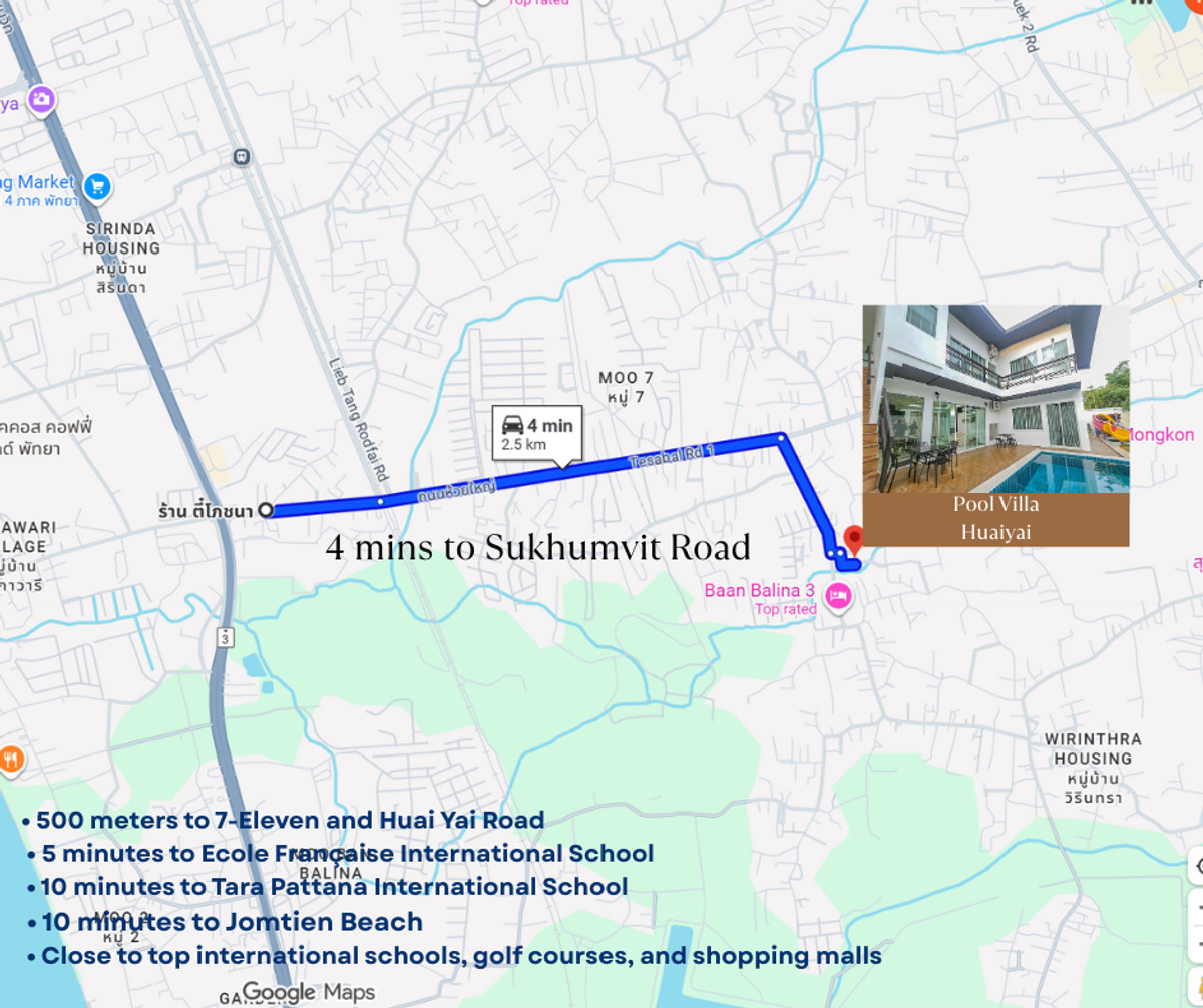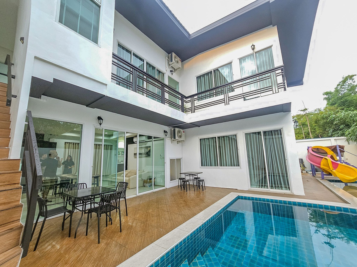 Tenanted Pool Villa Investment Opportunity – Na Jomtien This 4-bedroom pool villa represents a secure, high-yield investment asset. The property is offered for sale at THB 12.7 Million and is sold with an active one-year tenancy agreement. Key Financial Highlights: Secured Income: Generates a stable rental income of THB 90,000 per month. Investment Flexibility: Fully licensed and approved for short-term (daily) rental business operations, offering significant potential for higher yield. Property Specifications: Type: 4 Bedrooms, 4 Bathrooms Area: 249 sq.m. of usable space Land: 88.8 sq.wah (355.2 sq.m.) Features: Fully furnished, 7 air-conditioning units, 44 sq.m. private pool with slide, and 2 indoor parking spaces. Infrastructure: Located on a wide 8-meter internal road. Strategic Location: The property is conveniently situated near Jomtien Beach, Ecole Française International School, Tara Pattana International School, and major commercial centers.