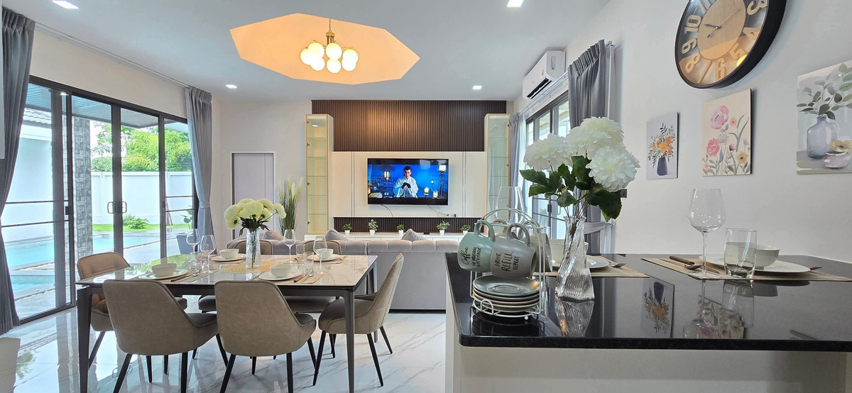 🏡 Modern style pool villa for rent. 📍Location: Map Prachan (near Map Prachan Lake) Peaceful location surrounded by nature Truly suitable for living. All functions complete Complete with furniture and electrical appliances. ✨ House details 4 bedrooms | 4 bathrooms | European kitchen | living room 🏊‍♂️ Private swimming pool 🌳 Private garden 🚗 2 indoor parking spaces 🔐 Electric gate Land area 100 sq m (400 sq m) 🛋️ Furniture & Complete electrical appliances 6 air conditioners / 5 smart TVs Microwave / Refrigerator / Washing Machine / Oven 4 beds / wardrobe / table-chair set / sofa Complete set of bed sheets 🛡️ Security system: electric fence 📶 Services included: Clean the swimming pool 2 times/week. Wi-Fi The gardener takes care of 🚫 Pets are not allowed. 💰 Rent: 70,000 baht/month 📆 Annual contract | 2 months deposit + 1 month advance 🏡 Modern Private Pool Villa for Rent 📍 Mabprachan Lake, Pattaya Peaceful surroundings, close to nature, and perfect for long-term living. Fully equipped with quality furniture and appliances — ready to move in! ✨ Property Details 4 Bedrooms | 4 Bathrooms | European Kitchen | Living Room 🏊‍♂️ Private Swimming Pool 🌳 Private Garden 🚗 Covered Parking for 2 Cars 🔐 Electric Gate Land Size: 100 sq. wah (400 sq.m.) 🛋️ Furniture & Appliances 6 Air Conditioners | 5 Smart TVs Microwave | Refrigerator | Washing Machine | Oven 4 Beds, Wardrobes, and Bed Linen Dining Table, Chairs, and Sofa 🛡️ Security: Electric Fence 📶 Included Services: Pool Cleaning 2 times/week Wi-Fi Gardener 🚫 Pets are not allowed 💰 Rent: 70,000 THB/month 📆 Annual Contract | 2 Months Deposit + 1 Month in Advance For more information or to schedule a viewing: ☎️ Nicky: Contact number 📲 WhatsApp: Contact number Line ID : sickoflove TikTok: Contact email1861   Facebook page: Richkye Properties LINE: https://line.me/ti/p/_Ivwtb48-V