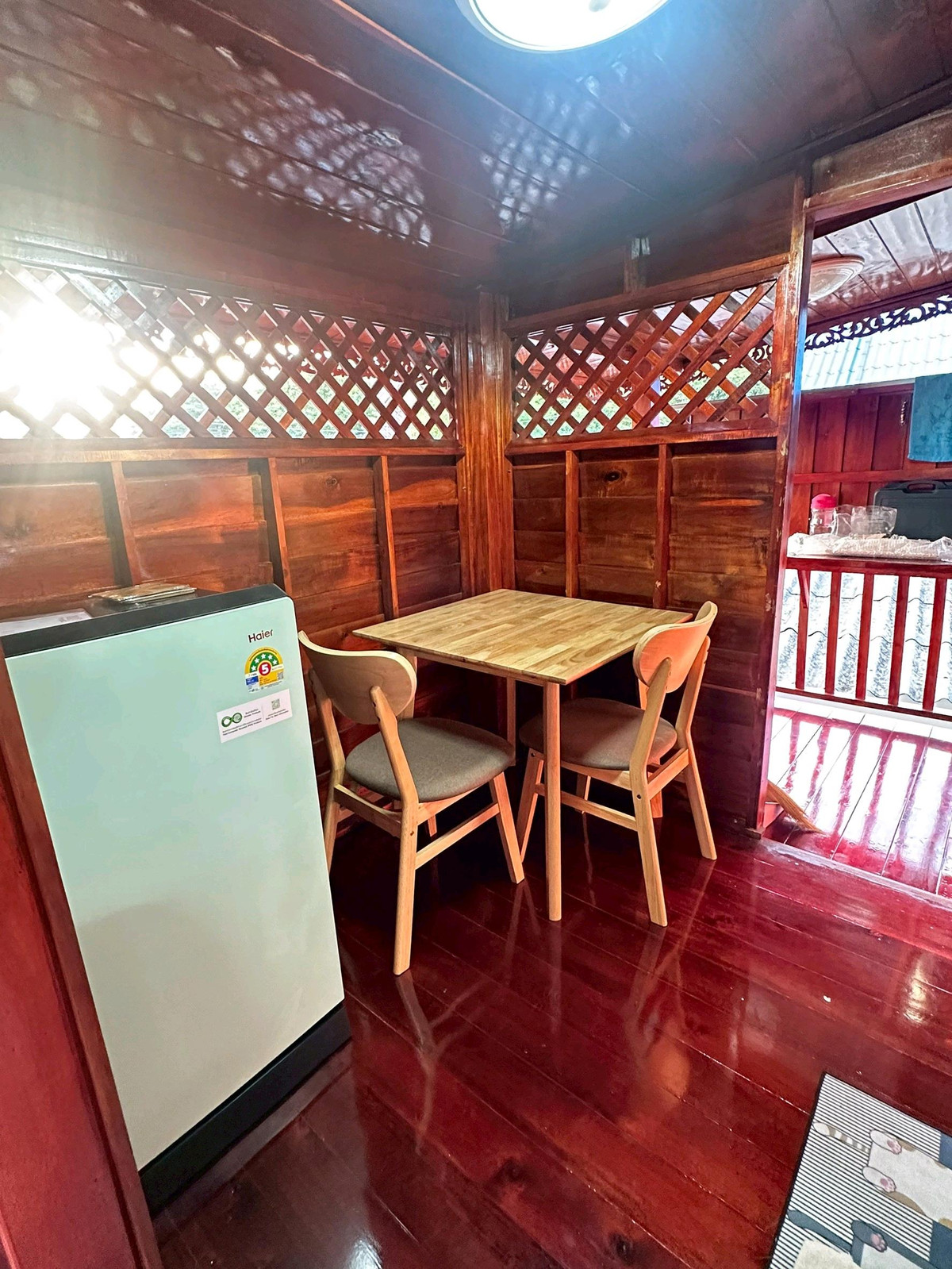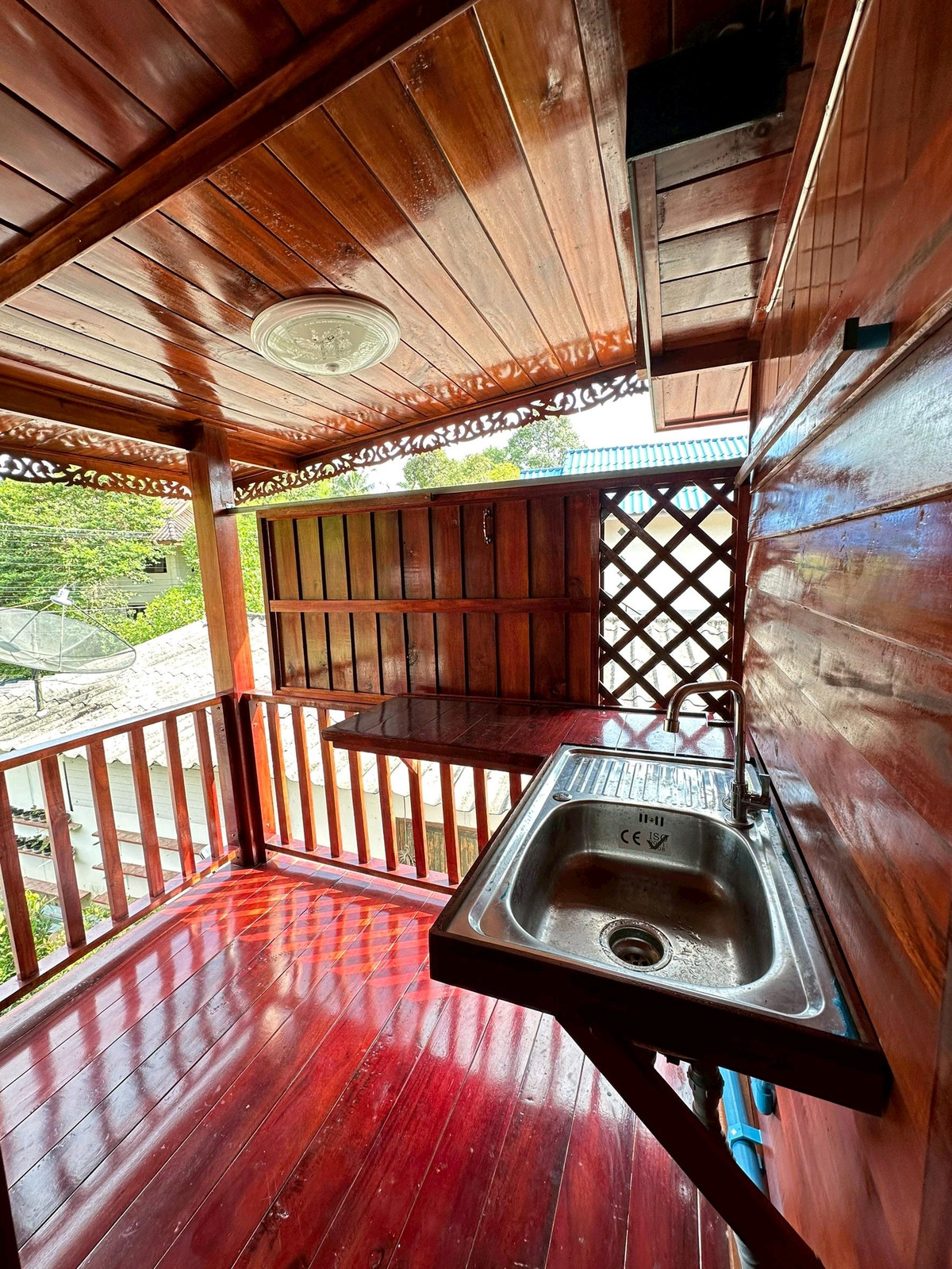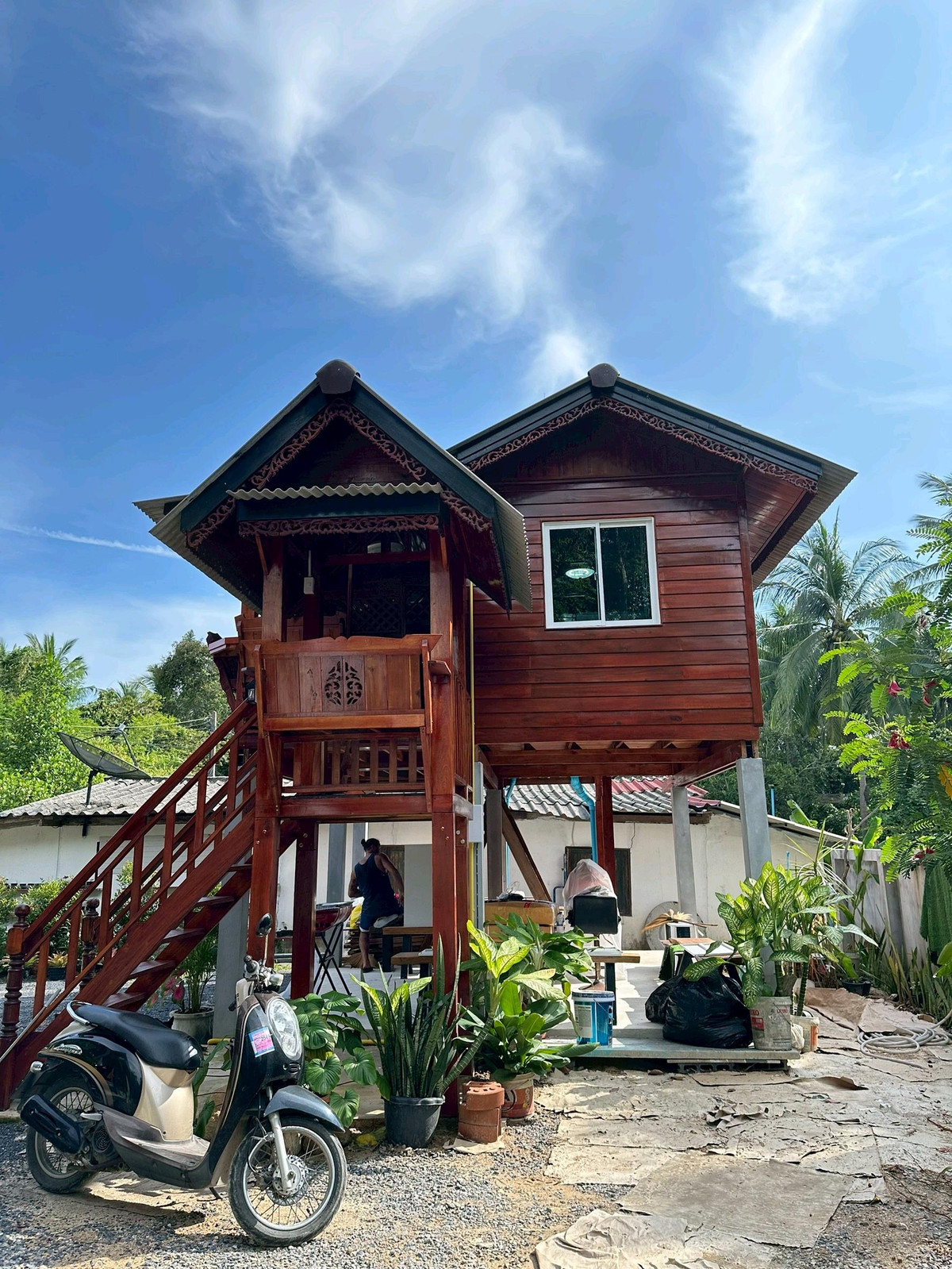 Thai style wooden house Complete facilities The ground floor is for activities , pets can be raised, good atmosphere 1 Bedroom1 Bathroom 1 Kitchen 1 A/C 2 Parking Furniture - Bed - Mattress - Wardrobe