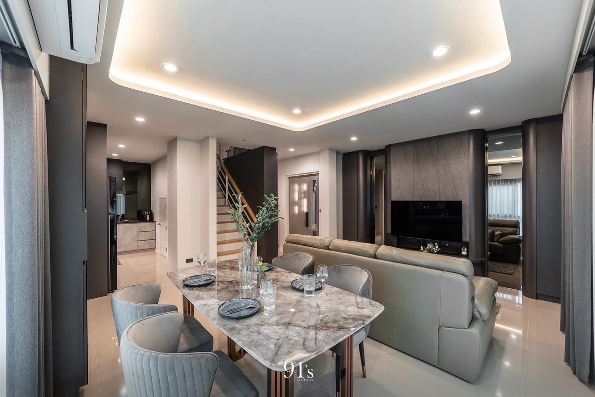 For Sale: Baan Klang Muang The Edition Rama 9 – Krungthep Kreetha Luxury 3-Storey Home by AP Thailand | Modern Luxury Style 📐 Usable Area: 222 sq.m. 📏 Land Size: 38.9 sq.wah 🛏 4 Bedrooms | 🛁 4 Bathrooms Fully furnished with built-in furniture throughout the house Includes 4 air conditioners, 1 water heater, and 2 water warmers Covered carport and complete interior decoration — ready to move in Prime Location in the Heart of Bangkok Convenient access to Rama 9, Motorway, and the new Krungthep Kreetha Road Surrounded by top schools, leading shopping malls, golf courses, and expressways ✨ Highlights • Only 4 years old — well-maintained and in excellent condition • Peaceful and private community • Ideal for families seeking a luxurious lifestyle with practical living space Move-in Ready — Elegance and Comfort in Every Corner