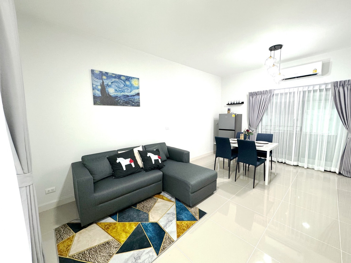 House for rent, 2-story townhome PlenoTown, Pleno Town, Ban Kluai - Kanchana (Complete central area, modern, with 24-hour security) https://maps.app.goo.gl/NmkCUFGZtcwj42JJ9 Near the MRT Purple Line, Central Westgate, just 10 minutes, ready to move in Size 16.5 square wah usable area 105 square meters 2 bedrooms, 2 bathrooms 2 parking spaces 1 built-in kitchen fully furnished Complete with electrical appliances , 3 air conditioners , refrigerator , Smart TV , front-loading washing machine , curtains/mosquito nets , water pump, water tank , water heater , built-in Thai kitchen, tiled walls with range hood, gas stove, sink, microwave , bedroom with air conditioning, ready to move in , master room - large wardrobe/bed. kingsize, dressing table, bedside cabinet Secondary bedroom - wardrobe/3.5 foot bed) Large L shape sofa Dining table 💖Common area💖 Large central garden area Fitness 24 hours Security system CCTV, security guard 24 hours Swimming pool with salt system 🏊♂️ There is a childrens pool and Jacuzzi zone , Pleno club , Jogging track, exercise area , playground area. Monthly rent 15,500 baht/month Advance, 1 insurance, 2 lease contracts, 1 year Free common fees. ================ Interested/Make an appointment to see/Inquire further Contact K’ JOY (Ag) Tel Contact number LINE ID: @theproperty999 LINE ID: Contact number WhatsApp Contact number