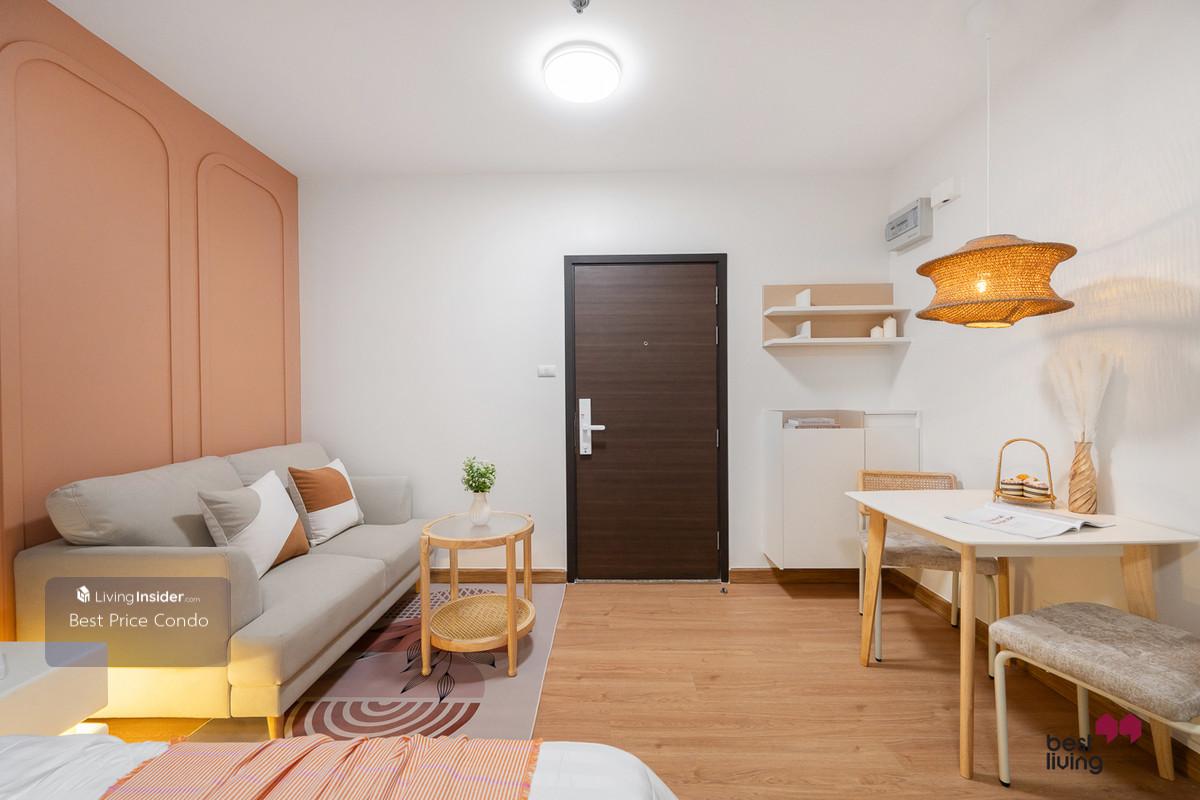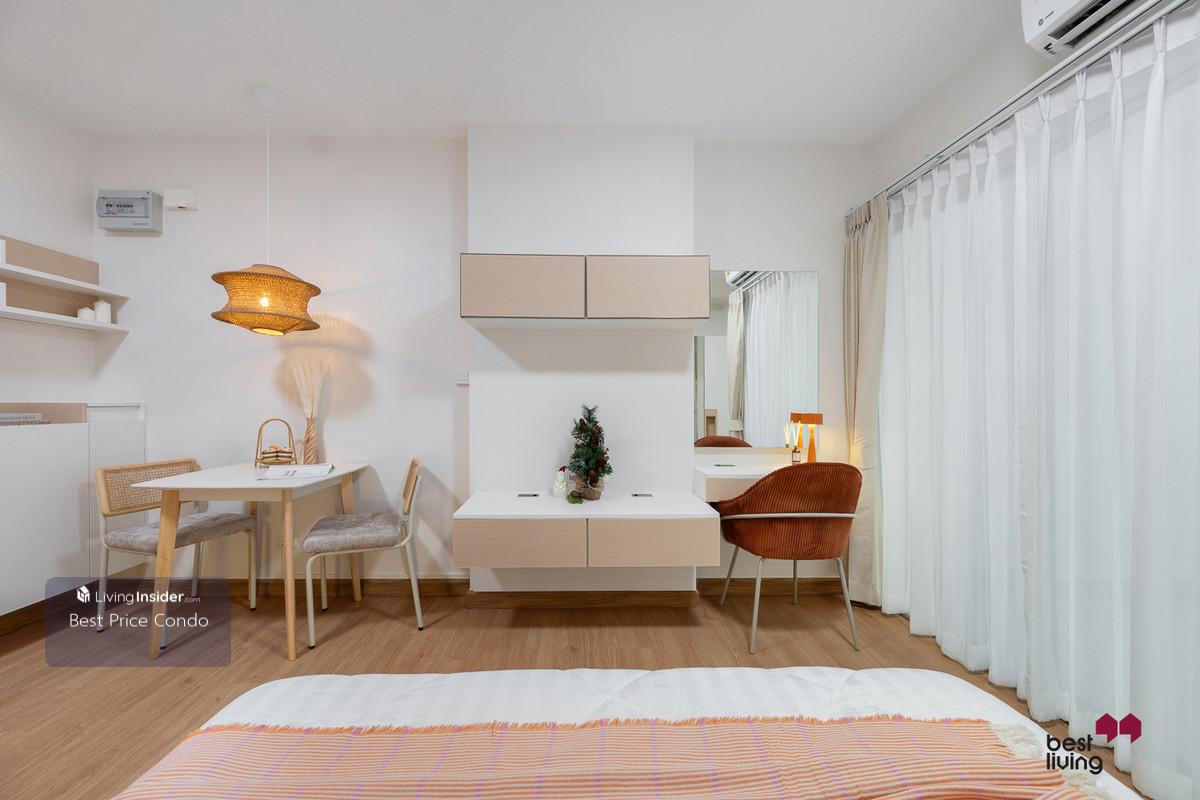 #Room details • Located on Rattanathibet Rd., Nonthaburi • 380 m. to MRT Bang Krasor • 1 Building, 33 Floors • Unit on 14th Floor • Studio Room, 29.69 sq.m. • Fully furnished with appliances • Open view, airy and cozy atmosphere • Full facilities: pool, gym, sauna, co-working space, rooftop garden