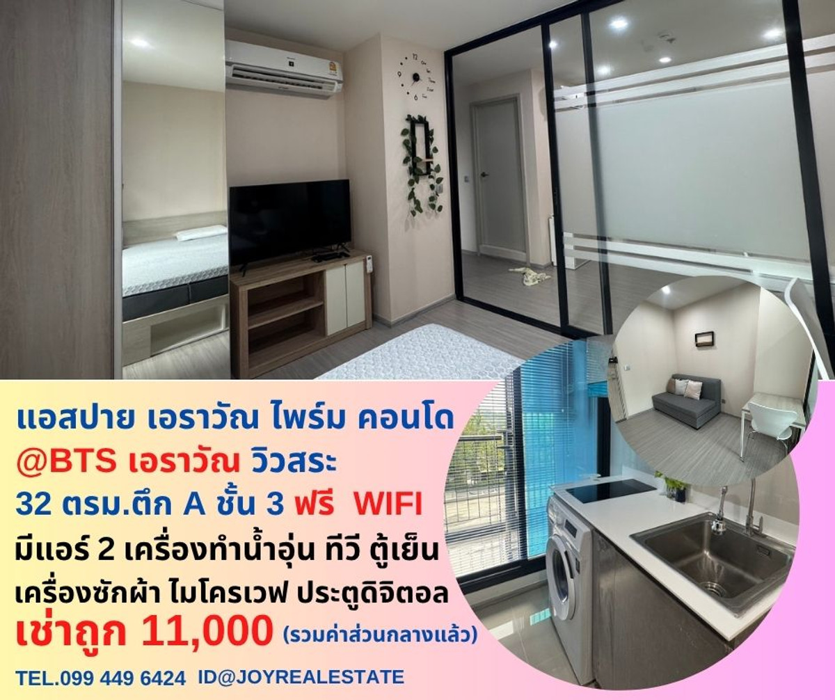 📌Condo for rent, Aspire Erawan, 32 sq m., BTS Erawan, 0 meters, 9th floor, Building A, pool view, Free WiFi, cheap rental 11,000 baht 1 bedroom, 1 kitchen, 1 bathroom, size 32 sq m. 📌Free service to find a condo room at the desired price 📌Electrical appliances -2 air conditioners -Water heater -2 door refrigerator -Digital door -Washing machine -Microwave -TV 📌Furniture -Multi-purpose table with 1 set of chairs -Built-in kitchen counter -1 set of dressing table -Bed with mattress -2 layers of curtains -TV shelf -Wardrobe -Sofa -Blinds 📌Amenities -Free Wifi@Co-Working Space -Exercise zone Muay Thai, mountain climbing, treadmill, fitness, swimming pool -24 hour security guard 📌Nearby places -Next to Erawan BTS station -Imperial Samrong Department Store -Bang Pu Industrial Estate 📌Cheap rent 11,000 baht/month (Common areas included) 📌If interested, contact. Joy☎️ Contact number🆔@joyrealestate Accept consignment for sale/rent Real Estate JOY Real Estate