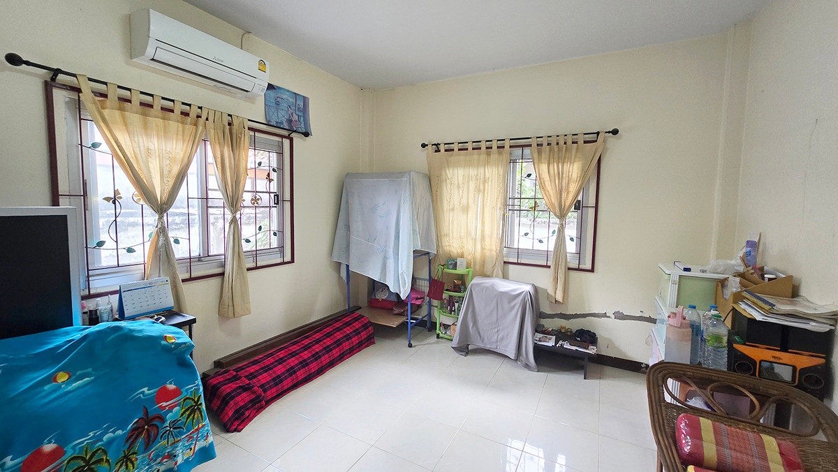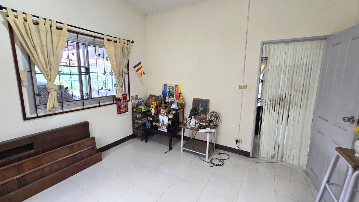 1-story detached house for sale, Suwinthara Village. Suwinthawong Road Chachoengsao Location: Suwinthawong Road Khlong Luang Phaeng Subdistrict Mueang Chachoengsao District, Chachoengsao 24000 - Area: 51 square wah - 2 bedrooms, 2 bathrooms, living room, kitchen - 1 air conditioner - Addition of kitchen and living room - In front of the house there is a roofed garage - Parking for 2 cars Nearby places: - Lotus Go Fresh Suwinthawong - Khlong Chao Market - Chinsuwinthawong Market - Triam Udom Suksa Pattanakarn Chachoengsao School ---------------------------------- Selling price 1,800,000 baht ----------------------------------- If interested, contact: Contact number