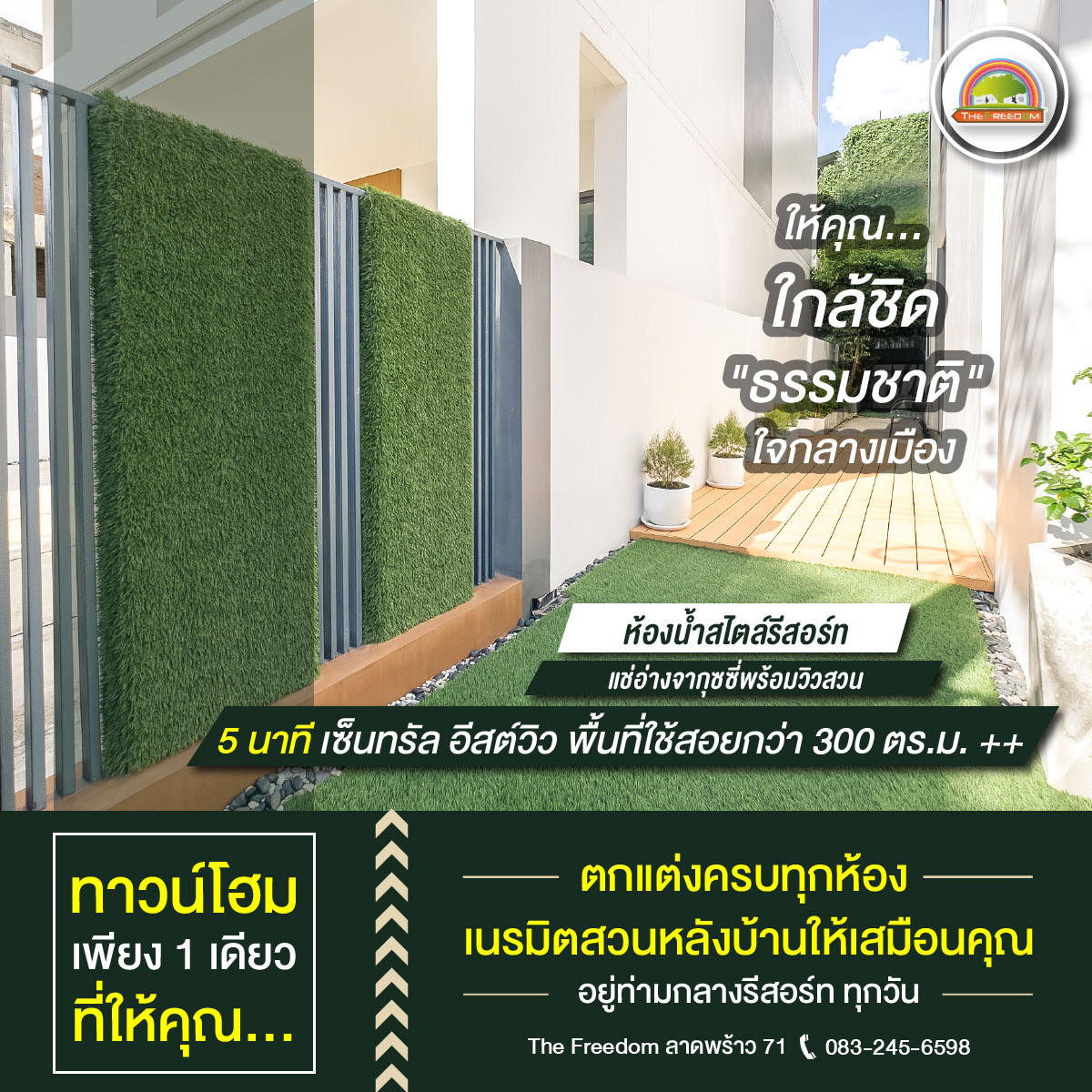 The Freedom Townhome ให้คุณมี"อิสระของการใช้ชีวิต" ที่คุณสามารถออกแบบได้เอง 🏡 ที่ The Freedom ลาดพร้าว 71 เราสร้างทุกตารางเมตรให้ตอบโจทย์ทุกมิติของชีวิตคนเมือง ทั้งพื้นที่ที่โปร่งโล่ง ฟังก์ชันที่ยืดหยุ่น และดีไซน์ที่สะท้อนตัวตนของคุณอย่างแท้จริง 🏠 Freedom in Space อิสระในพื้นที่ พื้นที่ใช้สอยกว้างขวาง เชื่อมทุกมุมของบ้านให้โล่ง โปร่ง สบาย สวนหลังบ้านขนาดใหญ่ให้ลูกๆ วิ่งเล่นได้อย่างอิสระ หรือจะจัดมุมสวนดอกไม้ 🌳 ⚙️ Freedom in Function อิสระในฟังก์ชัน ตอบโจทย์ทุกไลฟ์สไตล์ ไม่ว่าคุณจะ Work From Home หรืออยากพักผ่อน ทุกฟังก์ชันออกแบบให้ "ลงตัวกับชีวิตอิสระอย่างแท้จริง" 🎨 Freedom in Style อิสระในสไตล์ ตกแต่งครบทุกมุมแบบ Full Option พร้อมวัสดุพรีเมียมทั้งหลัง Wallpaper เกาหลีดีไซน์หรู Sofa ดีไซเนอร์นำเข้า ครัว Full Package Rain Shower ปรับระดับได้ 3 Steps แอร์ครบทุกห้อง + ไฟ LED สว่างทั่วหลัง ดีไซน์เรียบหรูแต่ทันสมัย ให้คุณสร้างบ้านในฝันในสไตล์ที่เป็น "คุณ" ได้อย่างแท้จริง 💬 ทำเลทองใจกลางเมือง 📍โชคชัย 4 – นาคนิวาส – ลาดพร้าว 71 เพียง 5 นาทีถึง Central Eastville / 10 นาทีถึง BTS / 15 นาทีถึง MRT ล้อมรอบด้วยร้านอาหาร คาเฟ่ และแหล่งไลฟ์สไตล์มากมาย 💎 พร้อมอยู่แล้ววันนี้ เริ่มต้นเพียง 8.49 ล้านบาท บ้านเดียวที่ให้ "อิสระ" ครบทั้ง Space, Function และ Style ไม่มีค่าส่วนกลาง ให้คุณใช้ชีวิตแบบอิสระในทุกมุมของบ้าน 📞 นัดชมโครงการวันนี้ พร้อมรับของที่ระลึกพิเศษ โทร : Contact number 🟩 Line OA : @vty1943i
