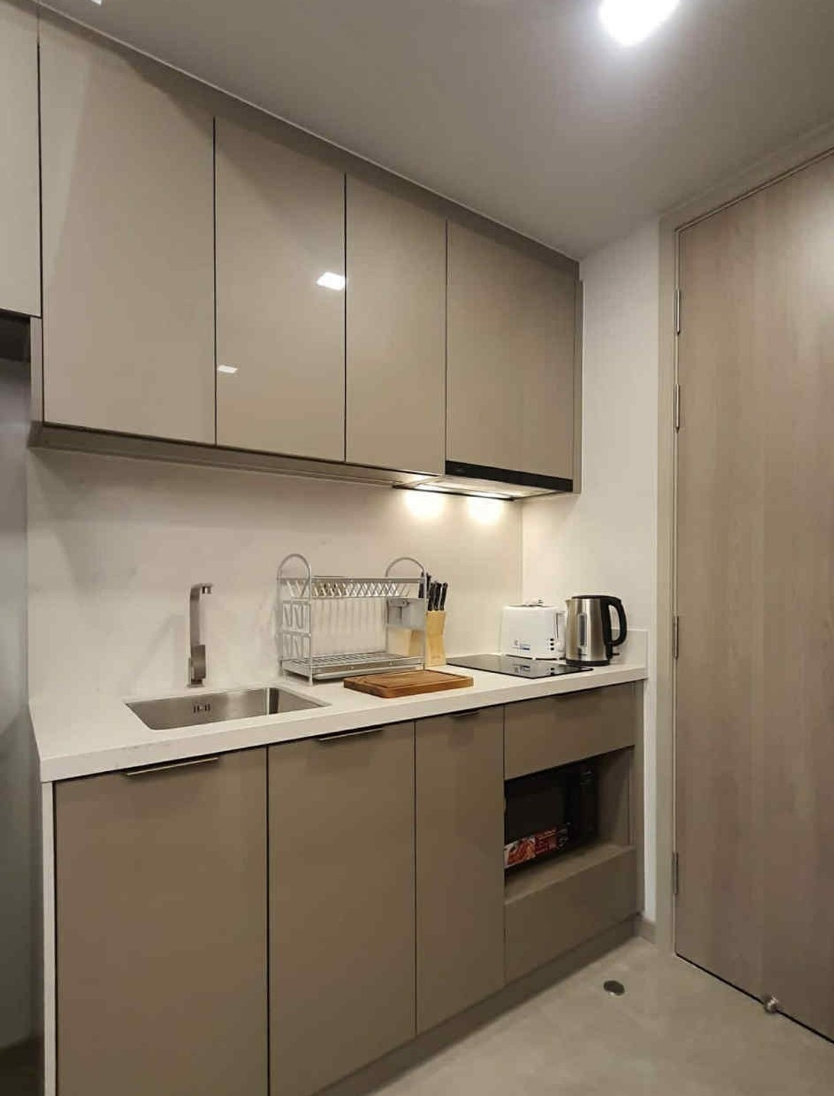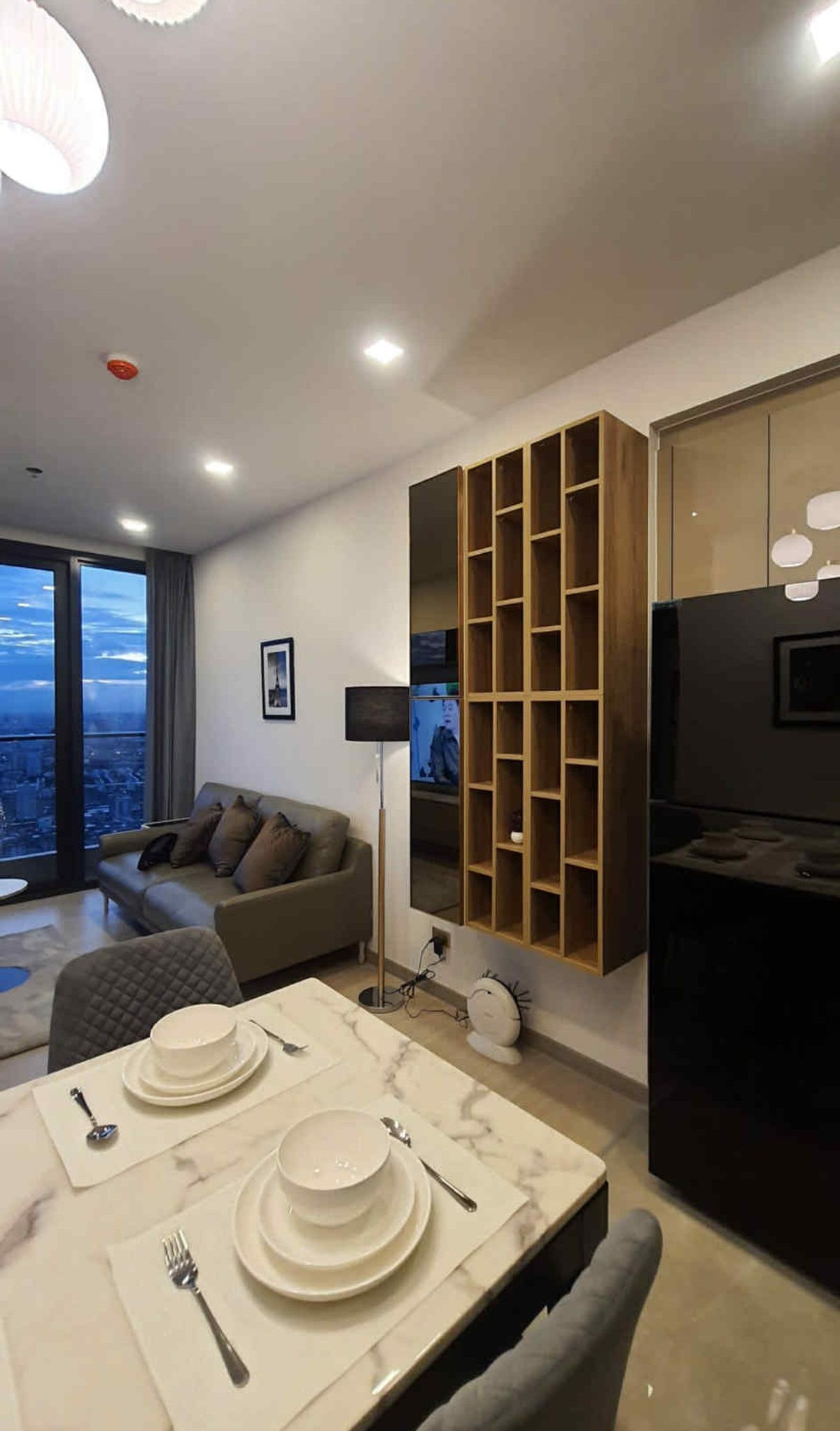 One9Five Asoke–Rama 9 Prime luxury condo on Rama 9 main road, just 540 meters (7-minute walk) to MRT Rama 9 and near Central Rama 9. Corner unit with a stunning city view, featuring a modern design, built-in furniture, and full essential appliances — move-in ready. Facilities include a 100-meter resort-style saltwater pool, fitness, sauna, sky garden, co-working space, lounge, 24-hour security, and CCTV. Excellent location with easy access to taxis, buses, and motorbike taxis. Only 390m from MRT Rama 9, 1 station to ARL, and 2 stations to BTS Asoke Interchange. Surrounded by offices, malls, and hospitals. Rent: 45,000 THB/month Lease: 1-year contract | No pets allowed Contact for viewing Wisa | Call/WhatsApp/LINE: Contact number