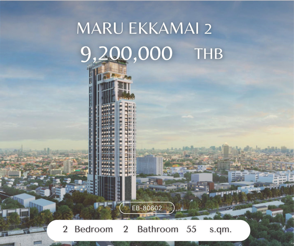 📌Urgent sale!!! Condo Maru ekkamai2, pet friendly condo 🐶🐱 in the heart of Ekkamai, beautiful room, fully furnished, good view, best price in the market Size 2 bedrooms, 2 bathrooms, 55 sq m Price 9.2