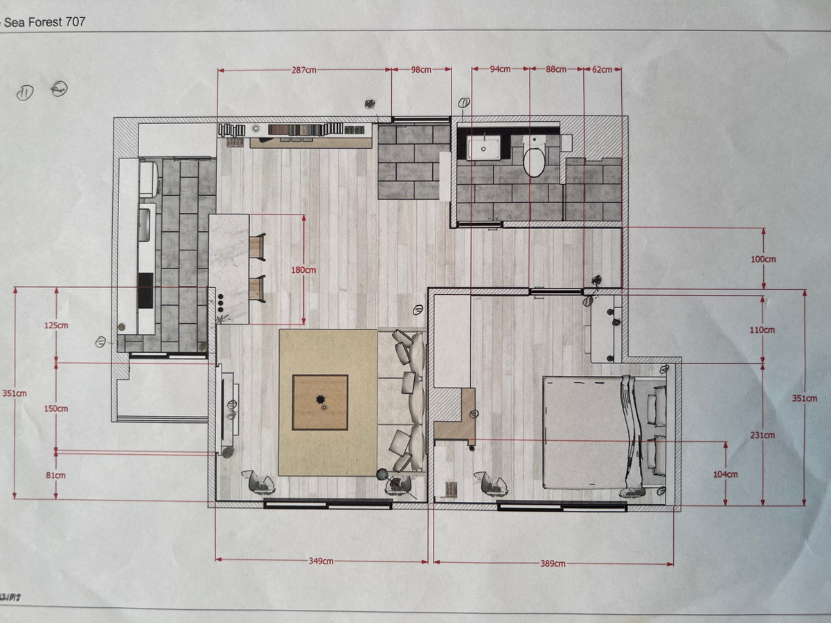 The Sea Forest Condominium, ready to move in, 7th floor, 50 sq m, 1 bedroom, 1 large living room.