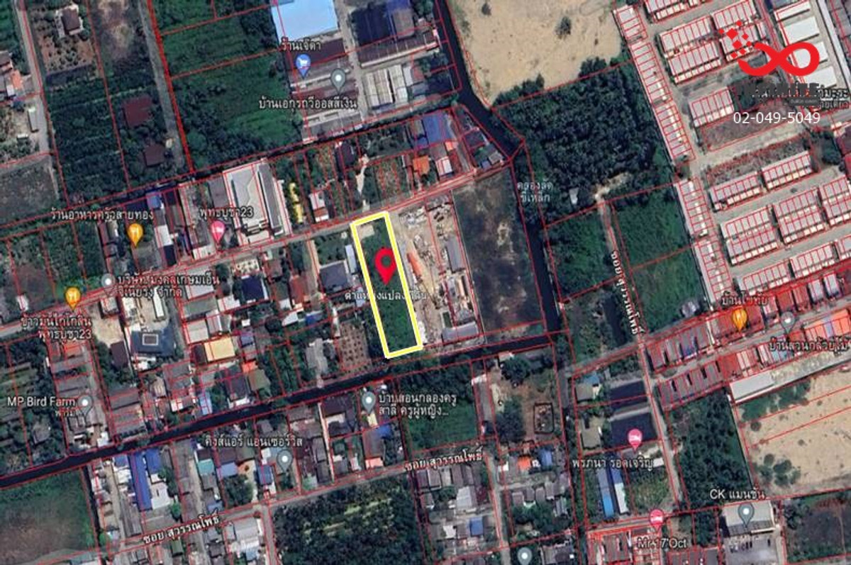 Contact: Mr. Jess Contact number office: Contact number Location: Phutthabucha Road, Soi Phutthabucha 23, Bang Mot Subdistrict, Chom Thong District, Bangkok 10150 Area: 684 square wah Width-Length: Width 28 meters, Depth 94 meters approximately Review: Land already filled in, rectangular plot shape. The front is next to a public road. The back is next to the canal. Lat Khilek The distance from the entrance of Soi Phutthabucha 23 is approximately 300 meters. The plot will be on the right-hand side. Orange city planning area (Medium density housing) Suitable for building a residence, home office, office building, commercial building or apartment size not exceeding 300 square meters. Good location, convenient travel, close to Chalerm Mahanakhon Expressway. And surrounding community areas Property facing direction: North Nearby places: Shopping and lifestyle places - Central Rama 2 - The Bright Rama 2 Educational institutions - King Mongkuts University of Technology Thonburi - Suankularb Wittayalai School Thonburi Hospital - Bangpakok 9 Hospital International - Koon Hospital Others - Buddha Bucha Temple - Luang Pho Opasi Temple Transportation - Chalerm Mahanakorn Expressway - BTS Silom Line Wutthakat Station - Suvarnabhumi Airport