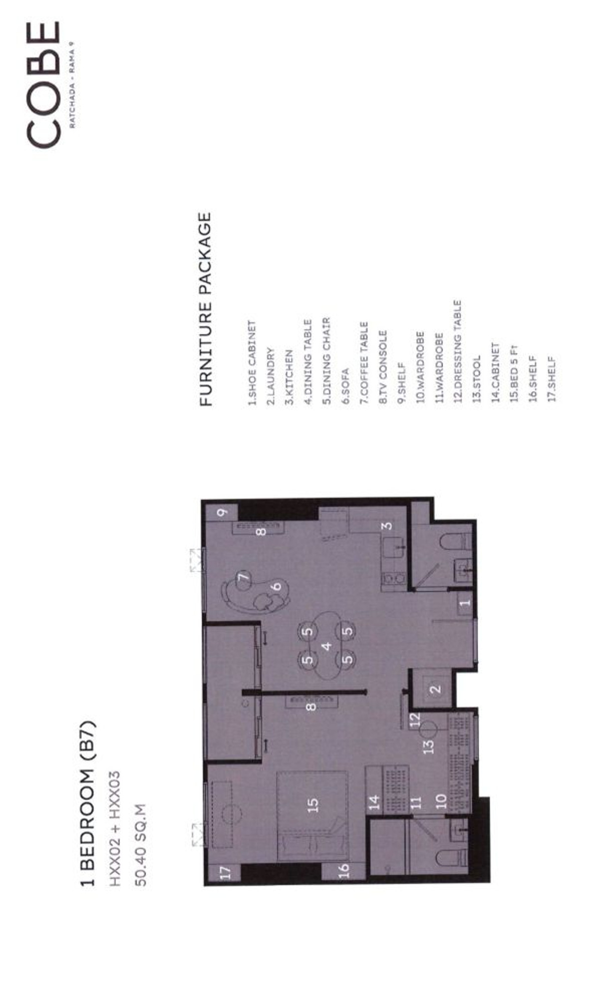 Property code: PA Contact number Condo down payment for sale, COBE Ratchada Rama 9, 20th floor, Fully Furnished, ready to move in in 2026, good location, near MRT Cultural Center. Location: Cobb Ratch