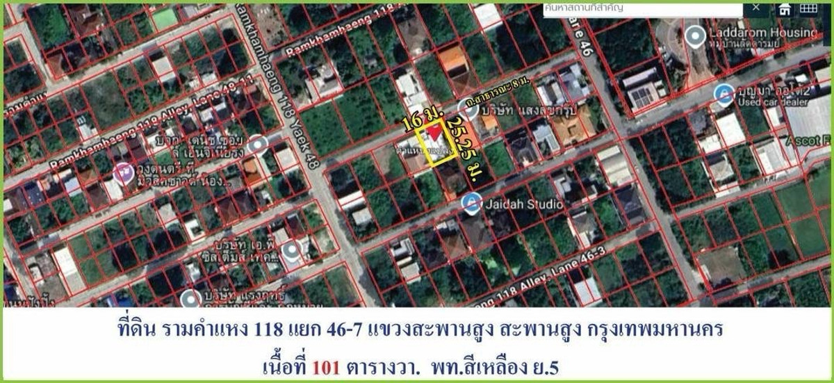 Urgent sale, cheaper than the market, land already filled, 101 sq m, good location next to the road, Soi Ramkhamhaeng 118, intersection 46-7.