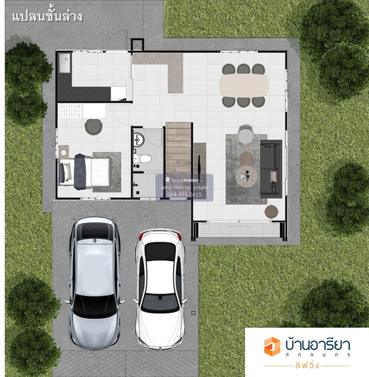 2 houses for sale, Baan Areeya Living Sakon Nakhon project 2 beautiful houses, total land area 117.5 sq m , suitable for large families, comfortable living, close to the airport and Robinson, total usable area more than 220 sq m Property details • Plot 1, size 62.8 sq m → House 2 Floor • Plot number 2, size 54.7 sq m → One-story house • The front of the house faces south • There is indoor parking for 2 cars + in front of the house can park additional 5 cars • Italian automatic gate • EV Wall Charger can be installed with new copper wiring already installed • The roofs are insulated by SCG on both houses • 8 CCTV cameras around the house • Shady atmosphere. There is a garden around the house The bathroom has a water heater in every room House 1 (2 floors | usable area approximately 114 sq m.) • Width 6.6 m., depth 9 m. • Ground floor: 1 living room / 1 kitchen / 1 bedroom / 1 bathroom / 2 air conditioners • Upper floor: 2 bedrooms / 2 ensuite bathrooms / air conditioner 2 machines • There is space in the middle between the bedrooms • Ceiling height: ground floor 2.71 m., upper floor 2.69 m. 2nd house (single floor | usable area approximately 102 sq m.) • Width 8.8 m., depth 11.6 m. • Ceiling height 3.44 m. • Large room can be used as a home theater room / Living room • There is 1 bedroom / 1 bathroom, 1 pantry, kitchen • 3 air conditioners • Install a large IKEA pantry worth more than 300,000 baht • 1 large security screen door, 1 set of safety screen screen windows Exterior area • There is a separate Thai kitchen outside • Parking roof is 3 meters high • Beautiful garden, shady trees around the house, easy to care for, peaceful and private • Water storage in 2000 liter DOS tanks 2 tanks, separate tanks for each house, separate water pump as well Nearby places • Sakon Nakhon Rajabhat University – approximately 5 minutes • Robinson Sakon Nakhon Department Store – approximately 10 minutes • Makro / Lotus / Big C – approximately 10 minutes • Sakon Nakhon Hospital – approximately 12 minutes • Sakon Nakhon Airport – approximately 15 Minutes Highlights of the property - There is a total land area larger than all the houses in the project - It has been beautifully decorated - The house structure is very strong - The land is on the corner of the road next to both the main and secondary roads - The location is convenient for traveling - Near the village project and many restaurants - Near many important places - Suitable for buying as a residence If interested in making an appointment to view the house, contact Contact number