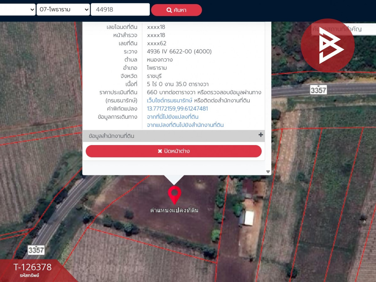 Land: Photharam, Ratchaburi Location: Nong Kwang Subdistrict, Photharam District, Ratchaburi Province Property code: T-126378 Type: Land Area: 5 rai 35.0 square wah Width: 160.00 meters Depth: 122.00 meters Direction: Northwest Additional details : Next to the main road, water and electricity available, beautiful land, mountain view, good soil Price : 4,500,000 baht Map link : https://maps.google.com/?q=13.77172159,99.61247481 **We have a free loan arrangement service. Ready to give advice Available from every bank** **with special interest rates and a maximum credit limit of 90-100% of the appraised value** If interested, ask for more information or make an appointment to see the house at Tel : Contact number Keng (agent code 2449) Line ID : sirichai2645 Callcenter : Contact number Interested in viewing more than 3,000 additional properties www.tb.co.th The Best Property Agent CO,.LTD. Leader in the brokerage business Full service real estate agent With professionalism, use of technology and creative innovation. To deliver the best service for you Providing services in buying, selling, and renting real estate.