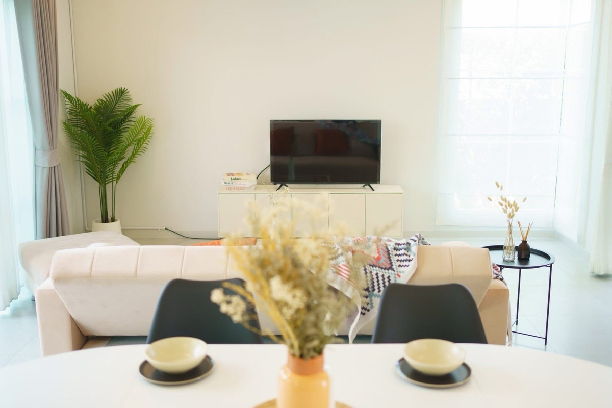 Chaiyaphruek Bangna Km.15 Rental price: 75,000 baht/month Selling price: 13,900,000 baht 2-story detached house 60.59 sq m. Usable area 184 sq m. 3 bedrooms 4 bathrooms 1 multi-purpose room 2 parking