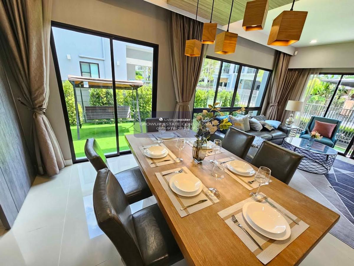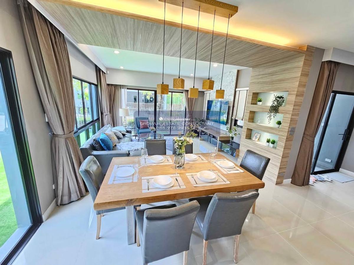 P-2851 Luxury house for rent! Single house, Lumpini Suan Luang Rama IX, ready to move in - size 54 sq m, usable area 228 sq m - 4 bedrooms, 4 bathrooms - with furniture. Electrical appliances (air conditioner, TV, refrigerator, microwave, water heater, washing machine and dryer) - 1 maids room and maids bathroom - near Seacon Square and Paradise Park - wine/drink refrigerator, 2nd floor Facilities - Club House, Fitness - swimming pool - public park and playground - security system with security guards. 24-hour care - Rental price 120,000 baht (1 year lease contract = pay 2 months security deposit / 1 month rent in advance, can move in) If interested, contact Tel : Contact number, Contact number (Tee) Line ID : @growup_pp (There is @ too) https://lin.ee/E7w94X7 *Please capture the screen or send the link of the condo you are interested in and send it via Line ;D