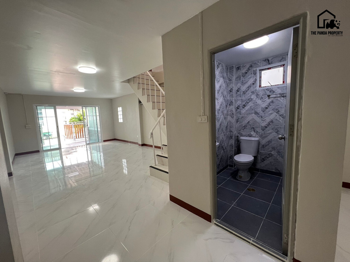 Phetcharoon Village Townhouse for sale next to Tamru Road, Bang Phli, near Bang Pu Industrial Estate. Whole house renovated, very good location, for trading or office use 2-storey townhouse 18.5 squar