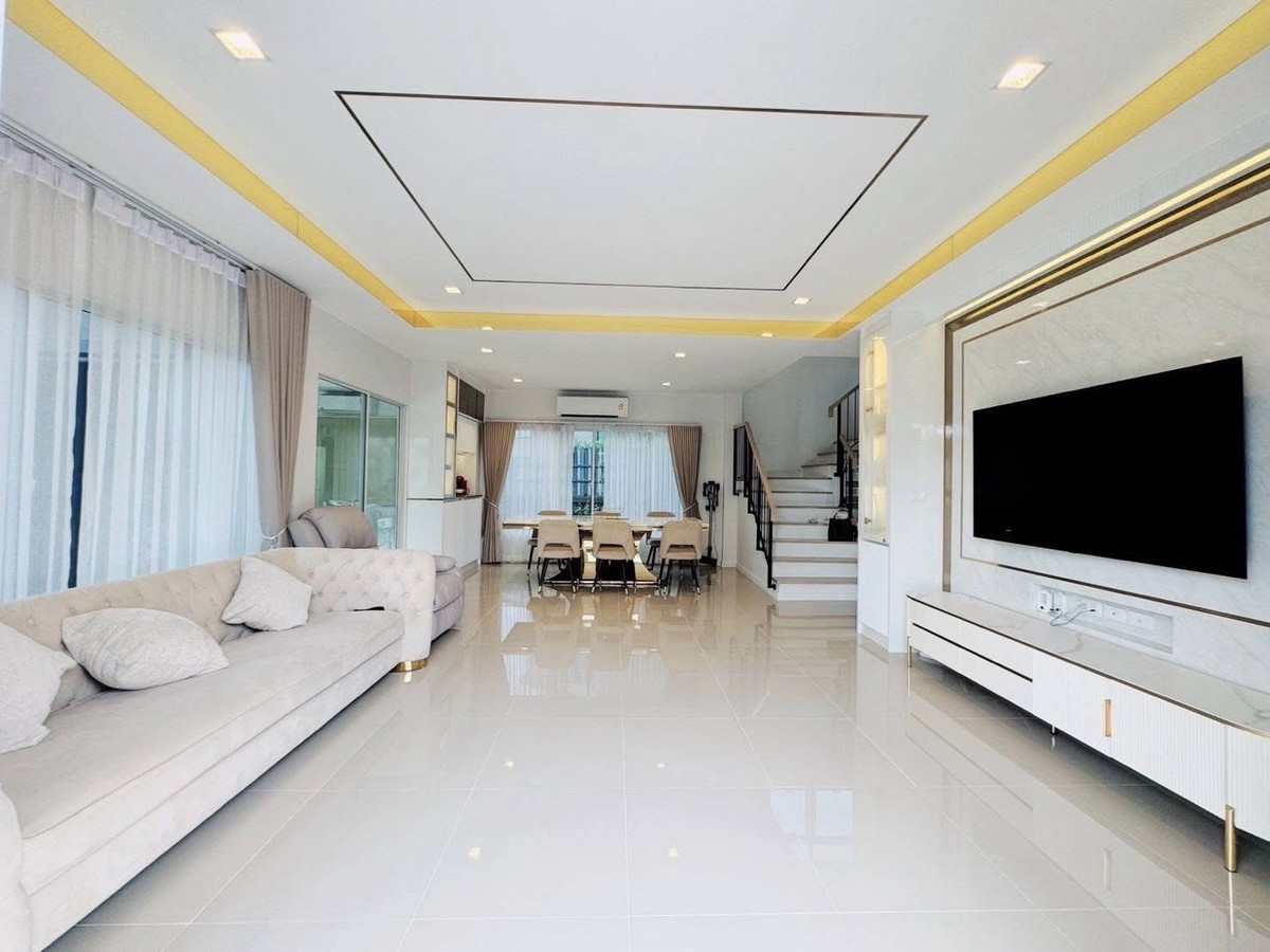 Laddarom Village Tiwanon Road Rental price: 80,000 baht/month Selling price: 12,900,000 baht 2-storey detached house 90.8 sq m Usable area 300 sq m 4 bedrooms 5 bathrooms 1 maids room(with attached ba