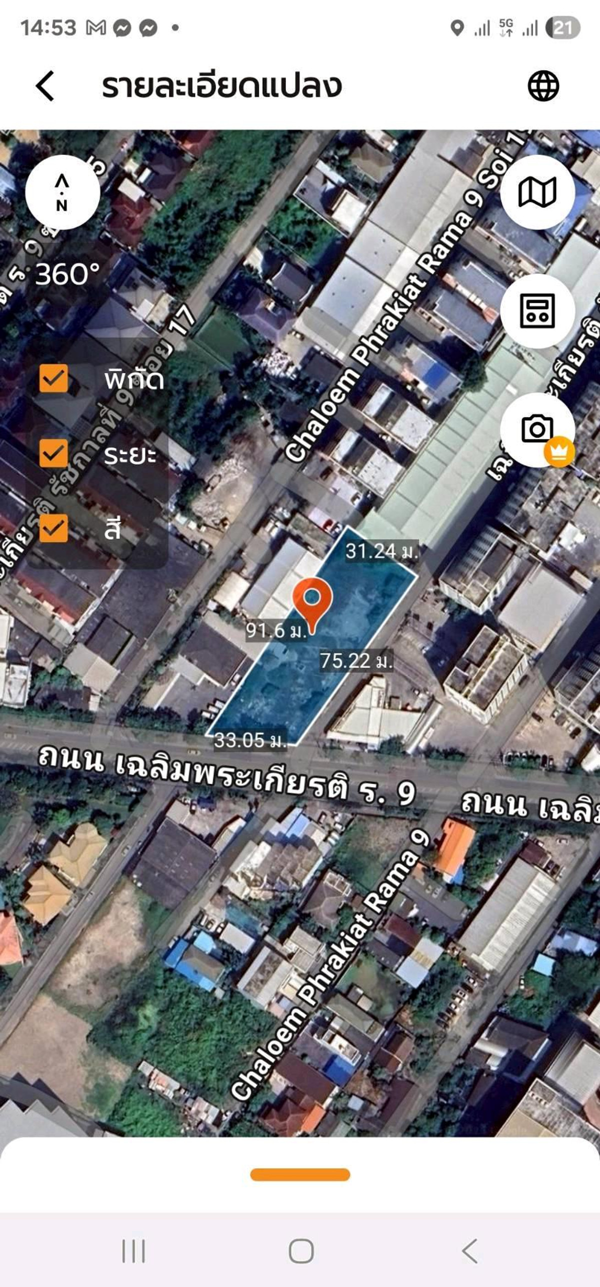 Offering for sale: Corner plot of land 570 sq m (almost 1.5 rai), high potential location. Next to Main Road Chaloem Phrakiat Rama 9, Soi 21, prime location, near Sri Udom BTS Yellow Line Station, only 1.3 km.