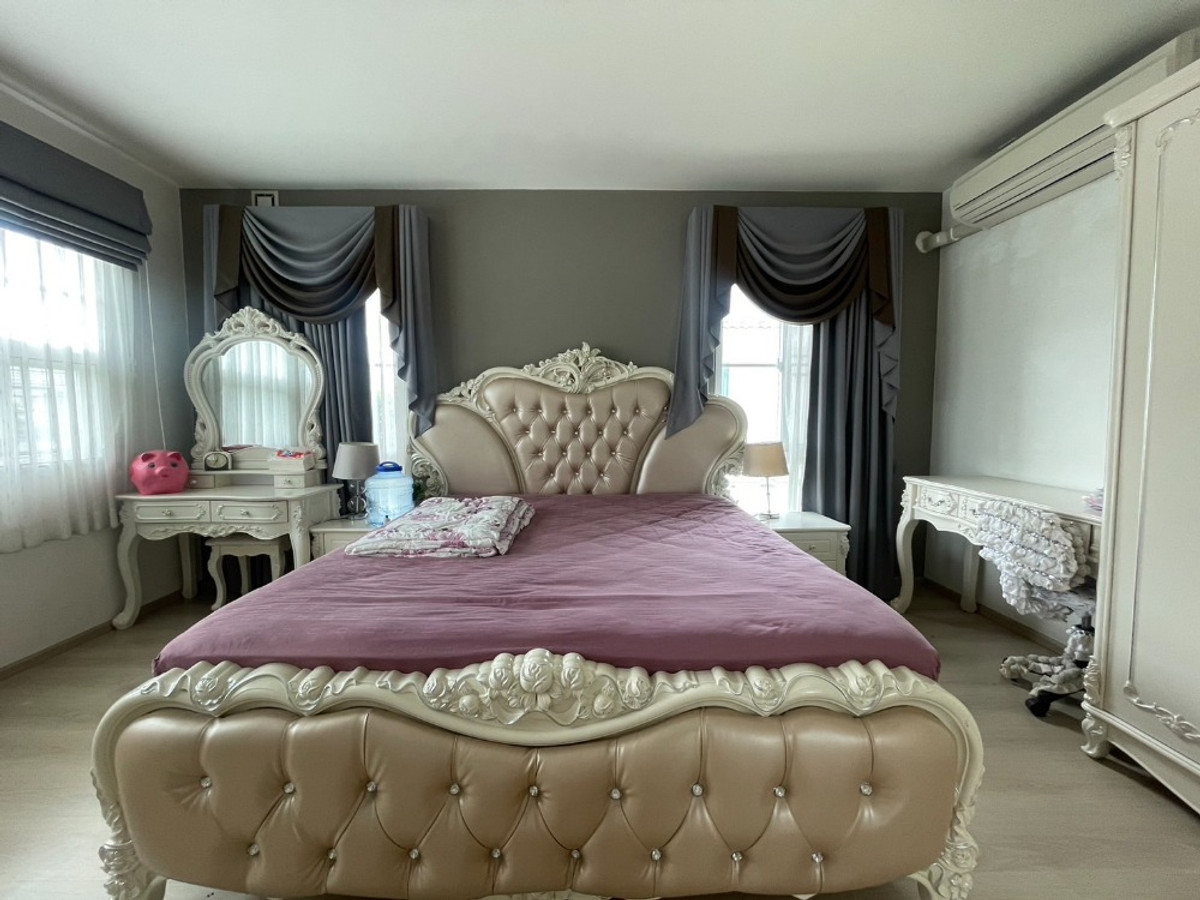 Single house for sale, ready to move in 🏡 63 square wah , usable area 136 square meters (not including small house) Chaiyaphruek Village Srinakarin Back of house next to canal 5,900,000 baht Transfer fee is half each Tel. Contact number House details -House age 7 years, lived in for 5 years -Front of house cut to the north -Quiet village -There is another small house built -3 bedrooms -3 bathrooms -1 kitchen -1 living room -2 Multi-purpose room - can park 2 cars plus 1. 3 air conditioners 60,000 +++ 2. 1 Daikin air conditioner 20,000 +++ 3. 2 water heaters 10,000 +++ 4. Master bedroom Furniture, 6 foot bed, 20,000 good mattress 40,000 2 large wardrobes, dressing table, 2 bedside tables, work table 60,000+++ 5.Curtains Mosquito screens throughout the house, made for 80,000 baht 6. TV cabinet 55,000 7. Smoke hood 12,000 8. Multi-purpose storage house, 2 floors, additional construction. 1,000,000+++ 9.Bed in downstairs room with mattress 15,000 10.Dining table+sofa 11. Stamped concrete floor around the house.