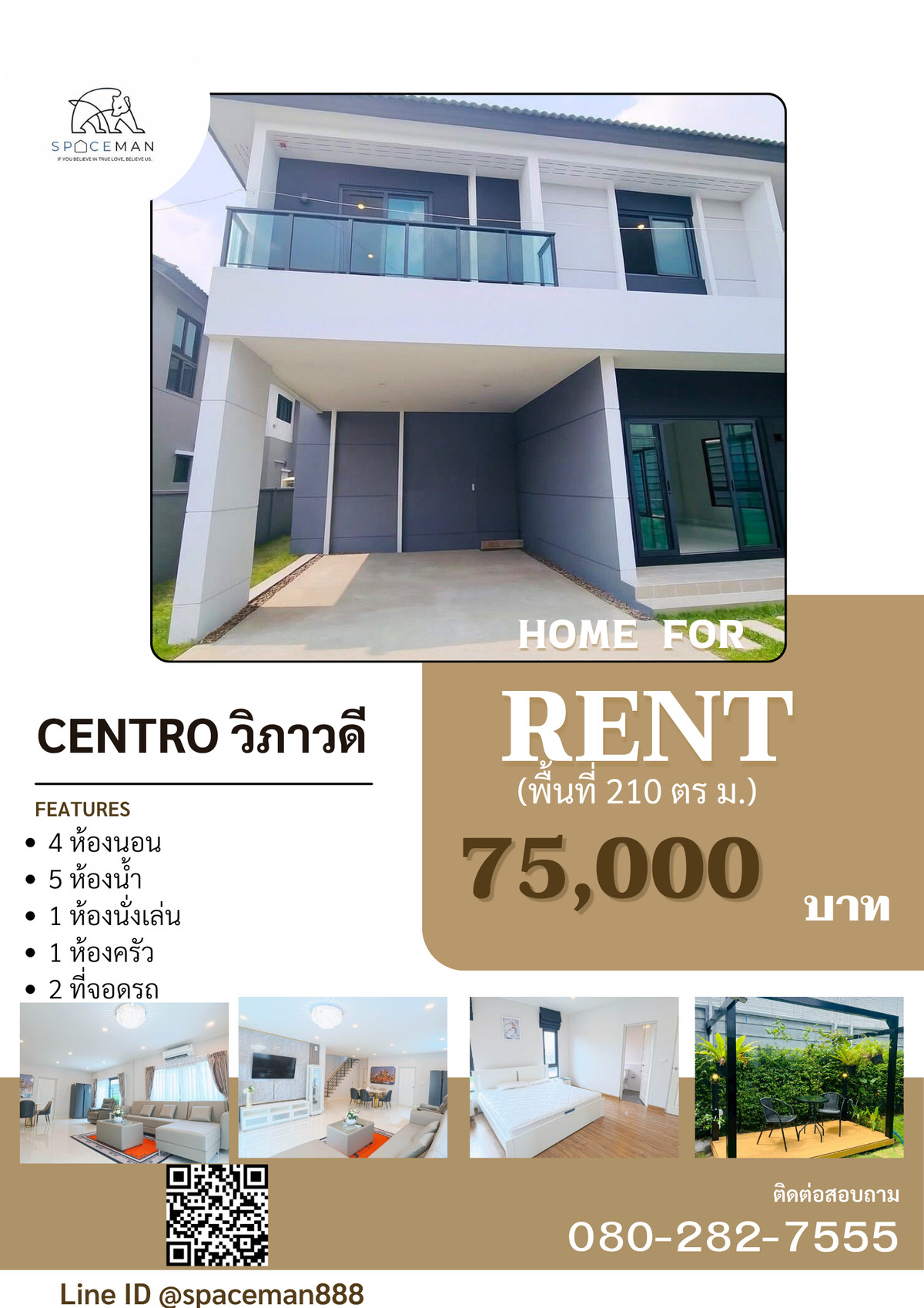 💰 Rent: 75,000 baht/month 🏡 House for rent, Centro Vibhavadi, beautifully decorated and private. Convenient travel ➡️ Usable area 210 sq m. ➡️ 4 bedrooms / 5 bathrooms ➡️ 1 kitchen / 1 living room 🚙 P