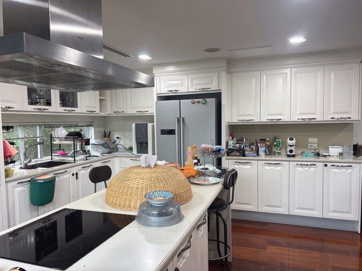 🏰 For Sale / For Rent: Mantana Village Rama 9 – Srinakarin Land area: 69.5 sq.wah | Usable area: 200 sq.m. | Fully furnished and move-in ready 👍 Sale price: 10.9 MB (Negotiable) 👍 Reduced from 12.5 MB 🥰 Transfer fee: 50/50 🥰 🫶 Rental price: 65,000 THB/month 🫶 1-month advance payment, 2-month deposit • 3 bedrooms, 4 bathrooms, 1 Thai kitchen, 1 movie room • Brand-new built-in kitchen worth several million baht, teak wood floors • All 4 bathrooms decorated with mosaic tiles • 8 air conditioners installed • Full stone flooring valued at several hundred thousand baht • Parking space for up to 30 cars 📲 Contact: Khun Ai Contact number Line ID: @MUUHOUSE465 We’re happy to assist you with property sales, rentals, and listings.
