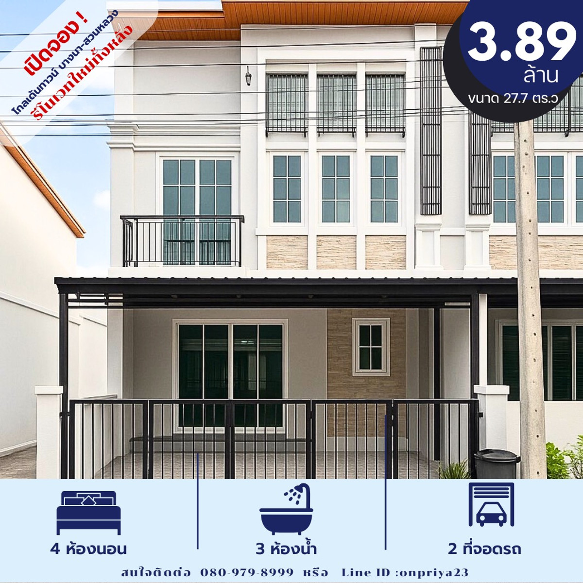🎉 Good opportunity for families looking for a newly renovated house ready to move in Meet a special corner house in the Golden Town Bangna-Suan Luang project 📍 Location next to the main road along the Kanchana Ring Road (Dokmai Subdistrict, Prawet District, Bangkok) 🏠 Area size 21.7 square wah (usable area 131 sq m) 4 bedrooms, 3 bathrooms, ready to renovate the whole house 💰 Special price of only 3.89 million baht very suitable for working families with small children. who want a comfortable home in a location connected to the city With complete amenities ✅ Newly renovated corner house Ready to move in immediately! 📞 Interested in viewing the house 080 -979 -8999 LINE ID : onpriya23 or want more information You can message me #House for sale #Townhome Bangna #Golden Town Bangna Suan Luang #renovated house #working family #good location