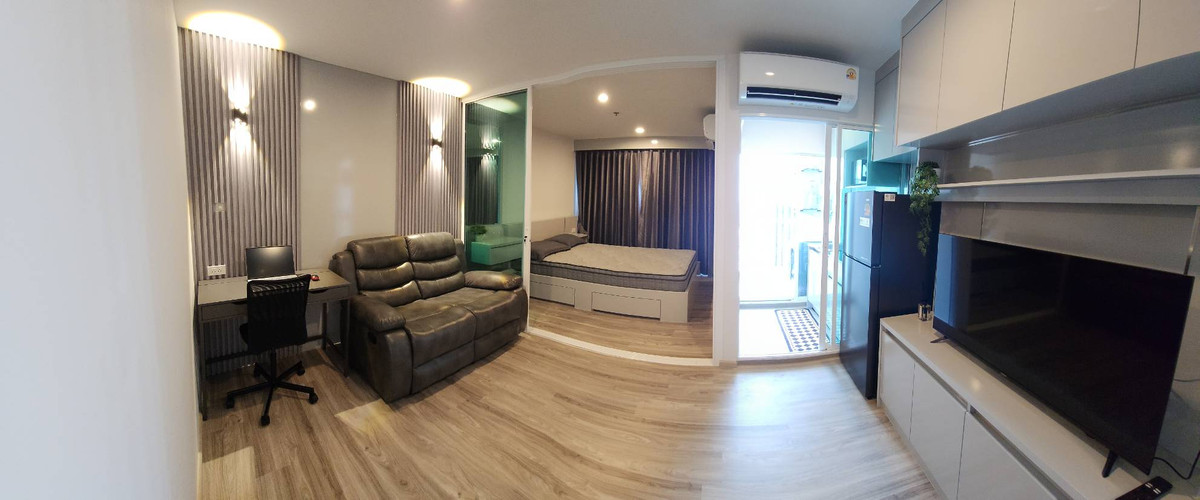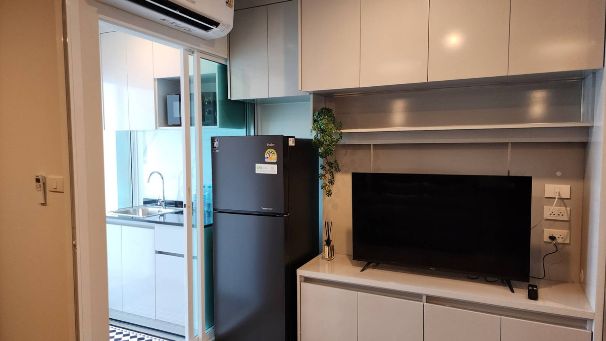 Condo for rent, Regent Home Bangna, Building A, 29th floor, Chao Phraya River view. Decorated and ready to move in, size 28 square meters, decorated and ready to move in, consisting of a bed, mattress, wardrobe, sofa, work desk, 2 layers of curtains, 2 air conditioners, TV, refrigerator, microwave, water heater. washing machine Complete with utilities, swimming pool, garden, fitness center, parking, elevator, key card entry and exit system. 24 hour security system, 400 meters from BTS Bangna, for rent 12,000 baht per month. If interested in renting, contact Khun Sam Contact number Line:id 6851152