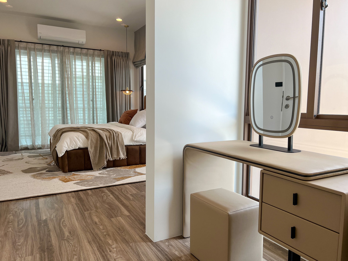 TWP608 Burasiri Krungthep Kreetha 2-story house 4 Bedroom 4 Bathroom Usable area 238 sq.m Well decorated with furniture and appliances Larger land of 68.5 sq.wa 3 parking spaces For Sale 26,000,000 Baht Rental Price: 160,000 THB/month