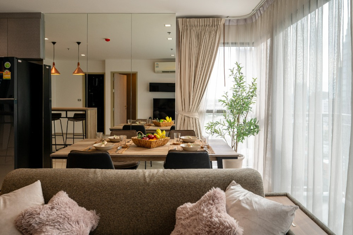 RHYTHM Sukhumvit 36-38 ✔Floor 15 🛏2 bedrooms, 🛁2 bathrooms ✔Size 78.04 sq m. 🖼Decorated room ready to move in Furniture and electrical appliances 💰Sale 13,700,000 baht 💵 Rent 65,000 baht/month 📍Nearby