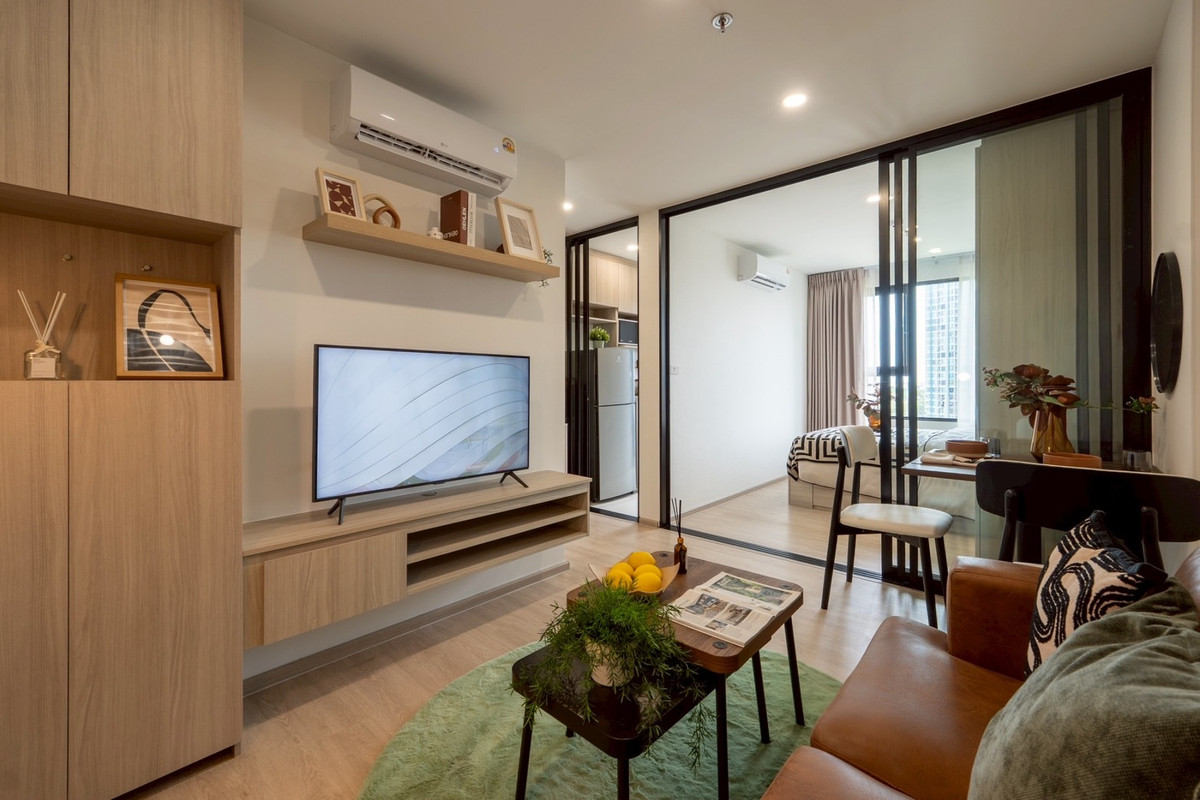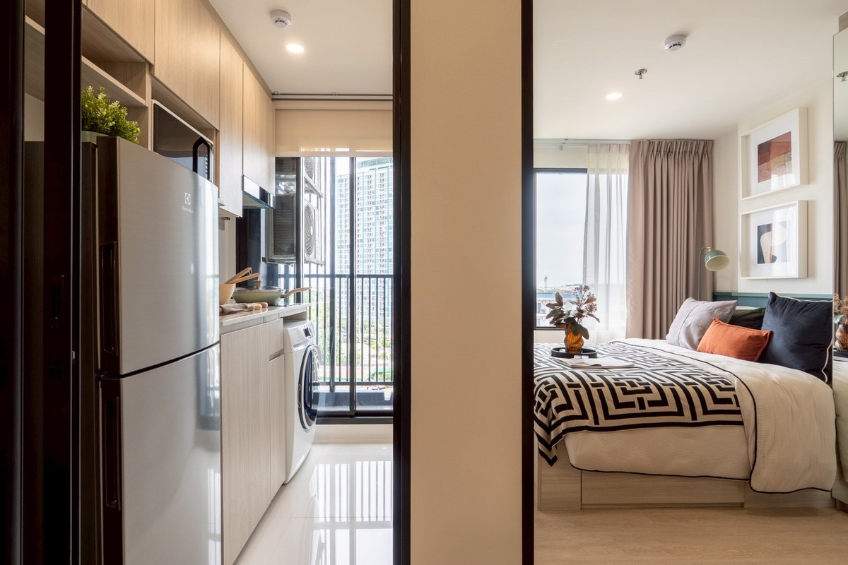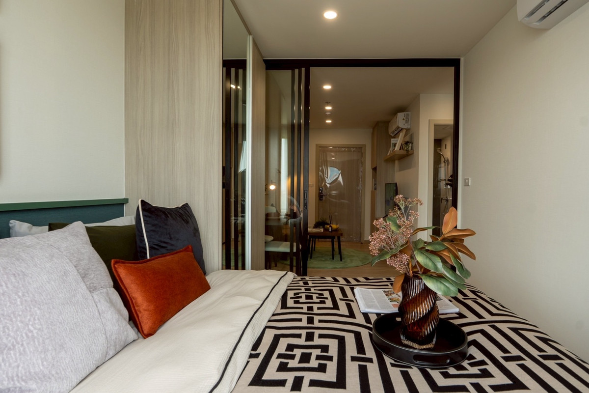 Last 5 rooms, first come, first served. Room size 27 sq m, pets allowed Origin Plug & Play E22 Station, next to BTS station, wire cable, one step to reach - Room size 27 sq m, 10th floor Project amenities - Fitness - Co-Working space - Meeting room - Rooftop running track for people who like to exercise outdoors - Room for cats - Room for dogs - Playing field for dogs - Swimming pool Next to Green Line Skytrain Station, Wire Line Station Green Line Skytrain, Wire Line Station 0 meters Fully furnished 1. Digital door lock 2. Sink faucet 1 item 3. Range hood 1 item 4. Air conditioner 12000 BTU 1 item 5. Air conditioner 9000 BTU 1 item 6. TV shelf 1 item 7. Kitchen set 1 item 8. Wardrobe 1 item 9. Electric stove 1 item 10. 5 foot bed 1 Item 11. Kitchen sink 1 item If interested, please make an appointment to see the actual room. Nid Contact number