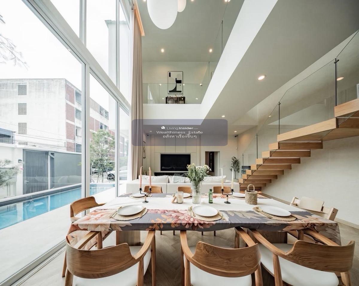 Single house for sale, luxury pool villa, Lat Phrao , self-built house, premium work. In Soi Lat Phrao 64, intersection 12, good location, near the mall and expressway 🏡 Land 100 sq m. | Usable area 440 sq m • 3 large bedrooms / 5 bathrooms / 2 maids rooms • Parking for 4 cars + storage room • Private swimming pool with ozone mineral water system • Large hall connecting Living – Dining – Kitchen + Thai kitchen • Foyer with high ceiling, Double Volume 8 m. • Recreation Room opens to pool and garden • Custom-made oak floating staircase • Laundry room + garden around the house 🏠 2nd floor: • Master Bedroom + large Walk-in Closet + en-suite bathroom • Bedrooms 2–3 with Walk-in Closet and private bathroom • Transparent glass hall connecting every part of the house ✨ Selling for only 30,000,000 baht ✨ Ask for information/make an appointment to visit the project to receive special deals 📲 Contact number(Khun Nam)⌨️ Line : https://lin.ee/yg1nFIW 💻 www.wealthinessestate.com