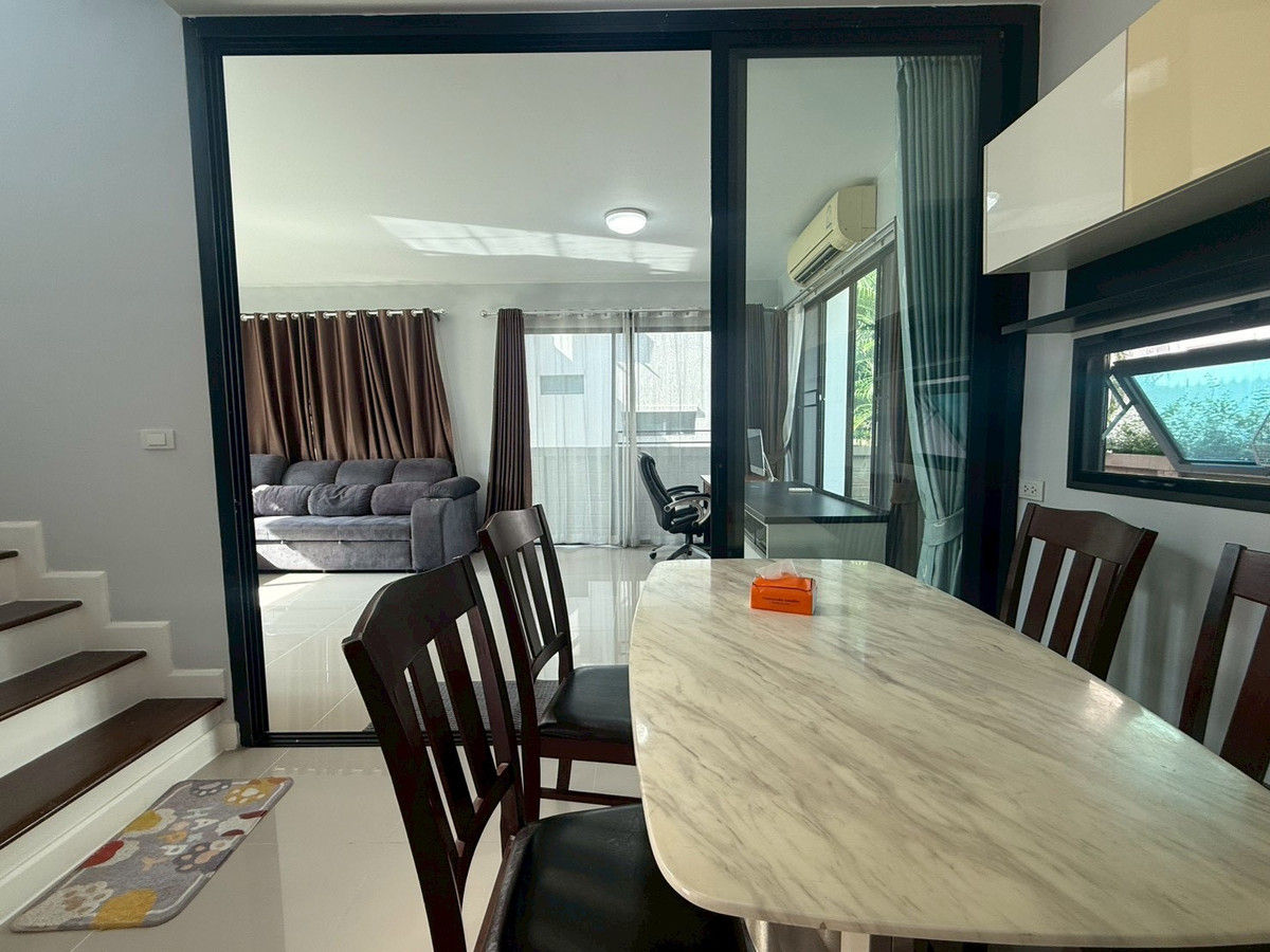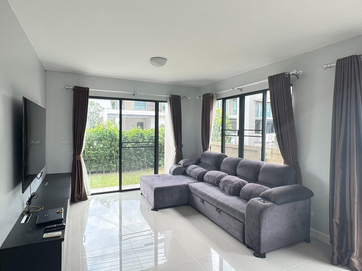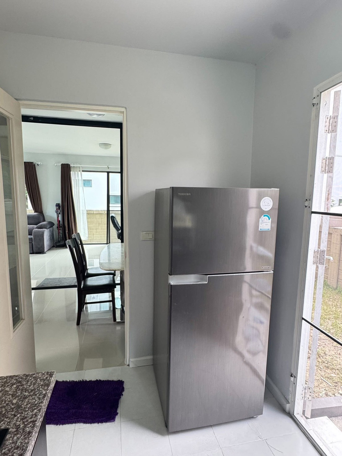 Single house for rent, Habitia Orbit Hathairat – house with complete furniture and electrical appliances 📍Hathairat Road Near Chatuchot Expressway, Fashion Island and the house has a quiet atmosphere Suitable for families who need a space to relax in an eastern city location ✅ Rent:32,000 Baht/month House details: Land area:54 sq m | Usable area:149 sq m 3 bedrooms, 3 bathrooms 1 living room, 1 kitchen, 1 storage room 2 parking spaces Full furniture and electrical appliances: Sofa 4 seat dining table Bed+mattress 3 Room 3 wardrobes 75" TV 4 air conditioners water heater refrigerator gas stove + range hood water filter Coway TOU transformer with 2nd circuit for charging electric vehicles Project facilities: 🏊♂️ Common swimming pool 💪 Fitness 🔐 24 hour security system and entry and exit as well. Keycard 📞 Contact Property code: BK1939 Tel: Contact number LINE: @Kinglandcondo (with @ too) WhatsApp / WeChat / Telegram: Contact number #HabitiaOrbitHathairat #House for rent Hathairat #House for rent with furniture #House for rent with fitness center #House for rent with swimming pool #House for rent near Fashion Island #House for rent near Chatuchot Expressway #KinglandCondo