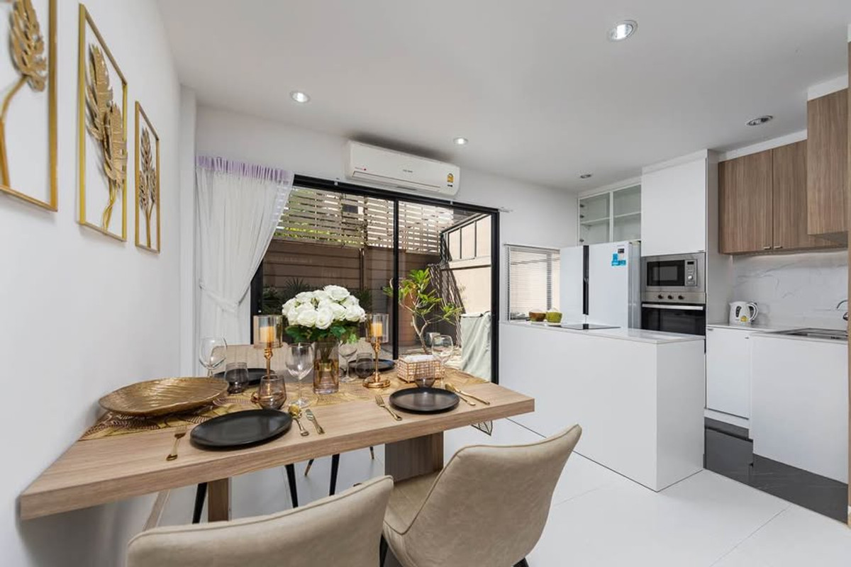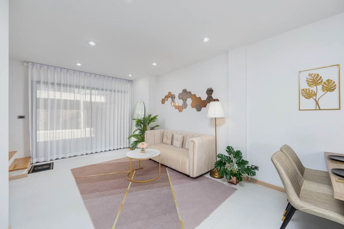 3-story townhome with furniture, beautifully decorated, for rent in Pak Kret-Nonthaburi area. Near International School Bangkok (ISB), only 800 meters.