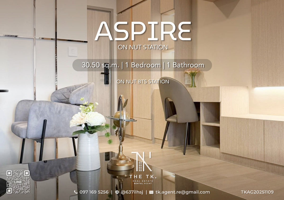 [THE TK.] ให้เช่าคอนโด 1 ห้องนอน ครัวปิด แต่งสวย ใกล้ BTS อ่อนนุช Aspire Onnut Statation พร้อมเข้าอยู่ | ติดต่อคุณทีเค Line ID @637ilhsj Property Code…: TKAG20251109 Project……………..: Aspire Onnut Statation Monthly Rent……: THB 23,000/25,000 Unit Type………….: 1 Bedroom, 1 Bathroom Unit Size…………..: 30.50 sq.m. Floor………………...: 6 Location……………: BTS อ่อนนุช Fully furnished with electrical appliances. รายการเครื่องใช้ไฟฟ้า - เครื่องปรับอากาศ - Smart TV 55" - ตู้เย็น - ไมโครเวฟ - เครื่องซักอบผ้า - เครื่องทำน้ำอุ่น - เตาไฟฟ้า พร้อมเครื่องดูดควัน รายการเฟอร์นิเจอร์ - เตียงนอน พร้อมที่นอนยางพารา 5 ฟุต - โซฟา พร้อมโต๊ะกลาง - ชั้นวางทีวีบิ้วอิน - โต๊ะรับประทานอาหาร 2 ที่นั่ง - โต๊ะแต่งหน้าบิ้วอิน - ตู้เสื้อผ้าบิ้วอิน - ตู้ร้องเท้าบิ้วอิน - โต๊ะทำงานบิ้วอิน - เคาน์เตอร์ครัวบิ้วอิน พร้อมประตู Digital Door Lock สิ่งอำนวยความสะดวก - ลิฟท์ - ที่จอดรถ - การรักษาความปลอดภัย 24 ชั่วโมง - ประตูอาคารระบบ Keycard - กล้องวงจรปิด (CCTV) - สระว่ายน้ำ - ฟิตเนส - สวนหย่อม สถานที่สำคัญใกล้เคียง - BTS อ่อนนุช - โรงพยาบาล กล้วยน้ำไท - โรงพยาบาลสุขุมวิท - เทสโก้ โลตัส สุขุมวิท 50 - Big C Extra อ่อนนุช - เกทเวย์เอกมัย - Major Cineplex เอกมัย - ไปรษณีย์ พระโขนง - มหาวิทยาลัยกรุงเทพ - โรงเรียนศรีวิกรม์ - True Digital Park - อ่อนนุชพลาซ่า สัญญาขั้นต่ำ 1 ปี/6 เดือน ค่าเช่าล่วงหน้า 1 เดือน : 23,000/25,000 บาท ค่าประกันความเสียหาย 2 เดือน : 46,000/50,000 บาท นัดชมห้องจริงติดต่อ THE TK. REAL ESTATE RENTAL AGENT 📞 PHONE...: Contact number 💬 LINE ID...: @637ilhsj (https://lin.ee/vrFUNkB) ✉️ EMAIL…..: Contact email ช่องทางการติดตาม TIKTOK….……: @the.tk.agent INSTAGRAM..: the.tk.agent YOUTUBE..….: @the.tk.realestateagent #คอนโดอ่อนนุช #AspireOnnutStatation #คอนโดใกล้BTS #คอนโดให้เช่า #THETK #THETKRENTALAGENT