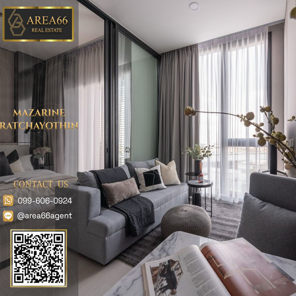 CJJ04 📍Mazarine Ratchayothin ➡️ 1 bedroom, 1 bathroom, 10th floor ➡️ Room size 32.92 sq m. Selling for 4,990,000 baht 🔥🔥 Contact us ☎️Tel : Contact number 📱Line ID : @area66agent (with@infront) 🤳🏽Link Line@ : http://line.me/ti/p/@area66agent 🌐WhatsApp : Contact number/ Contact number 🔹WeChat ID : area66realestate ✅ Facilities Swimming pool, fitness Lobby 24-hour security system CCTV. ✅Phahon Yothin Road, Chomphon Subdistrict, Chatuchak District, Bangkok ✅ Nearby places 7-11 " We have the most rooms to choose from. and the best price Complete in one place Area66 Real Estate Co., Ltd