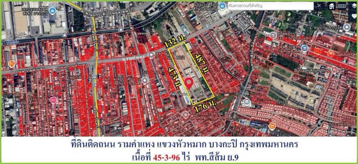✅MT114: Investment opportunity on land in the highest potential location of Ramkhamhaeng 🟠Large plot of land, orange layout, next to Ramkhamhaeng Road 60/5 (formerly Bangkapi Square) ✅ Potential to de