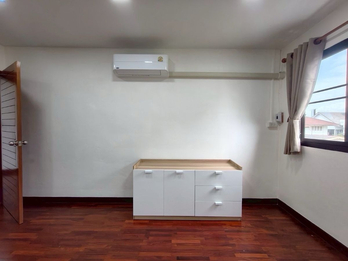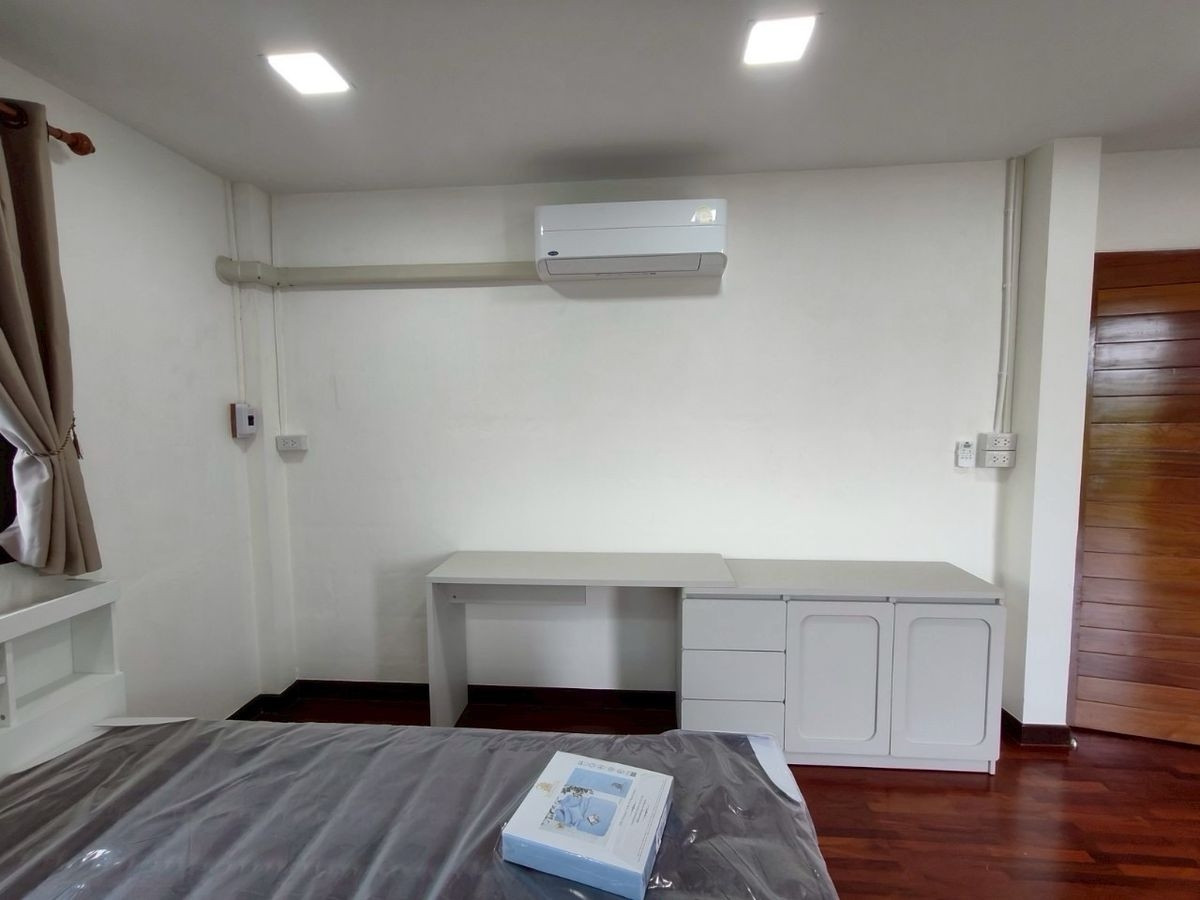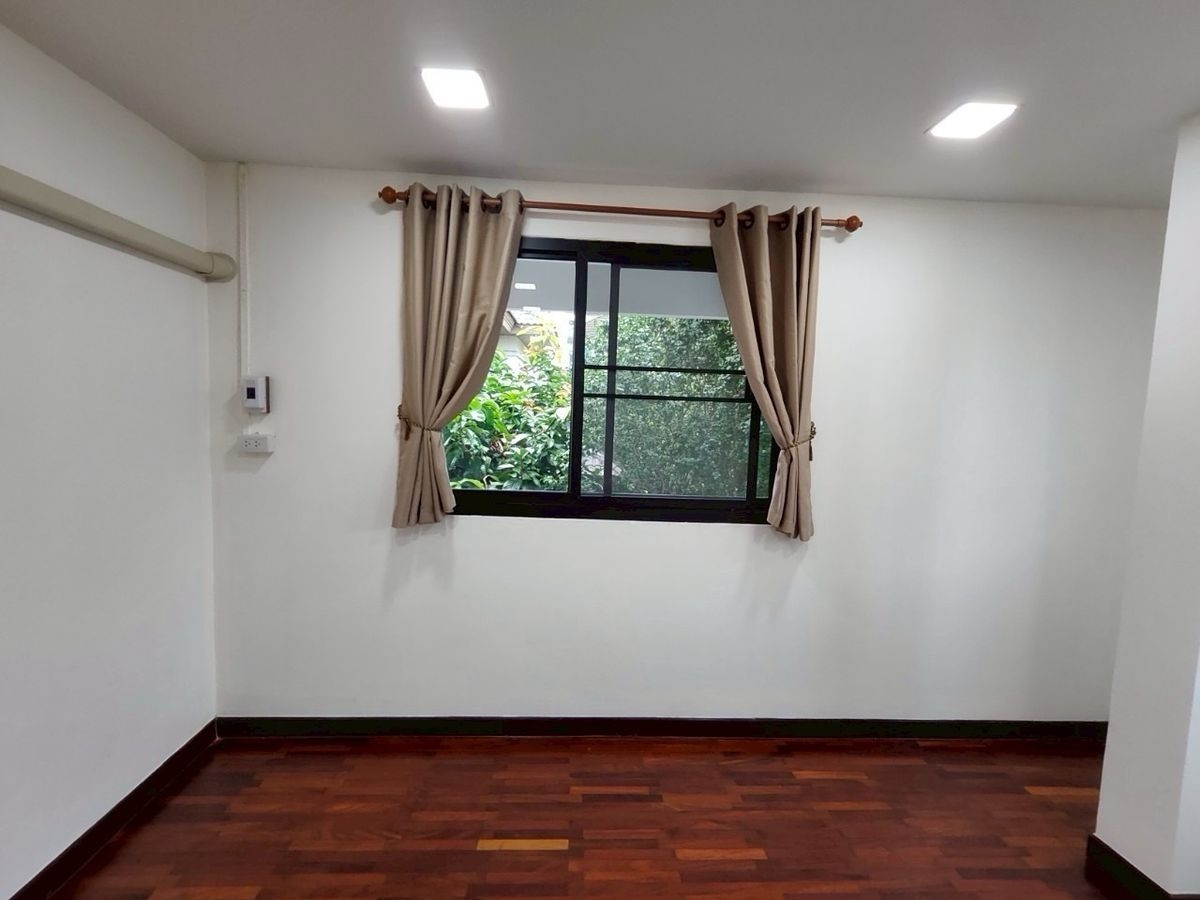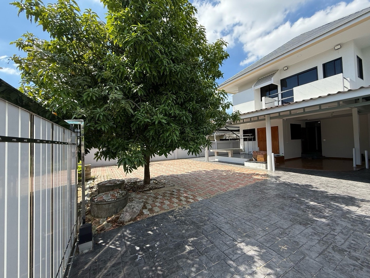 Big garden space , electric door gate, parking for 6 cars. House for rent in Sangkhom Songkhro 2-storeys house Size: 110 square wah Usable area: 250 square meters 4 bedrooms, 5 bathrooms Parking for 8