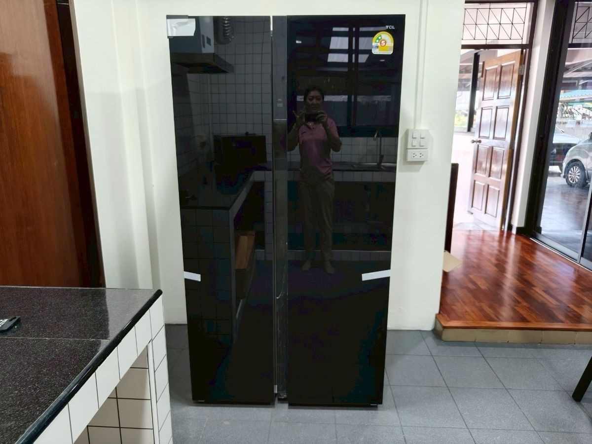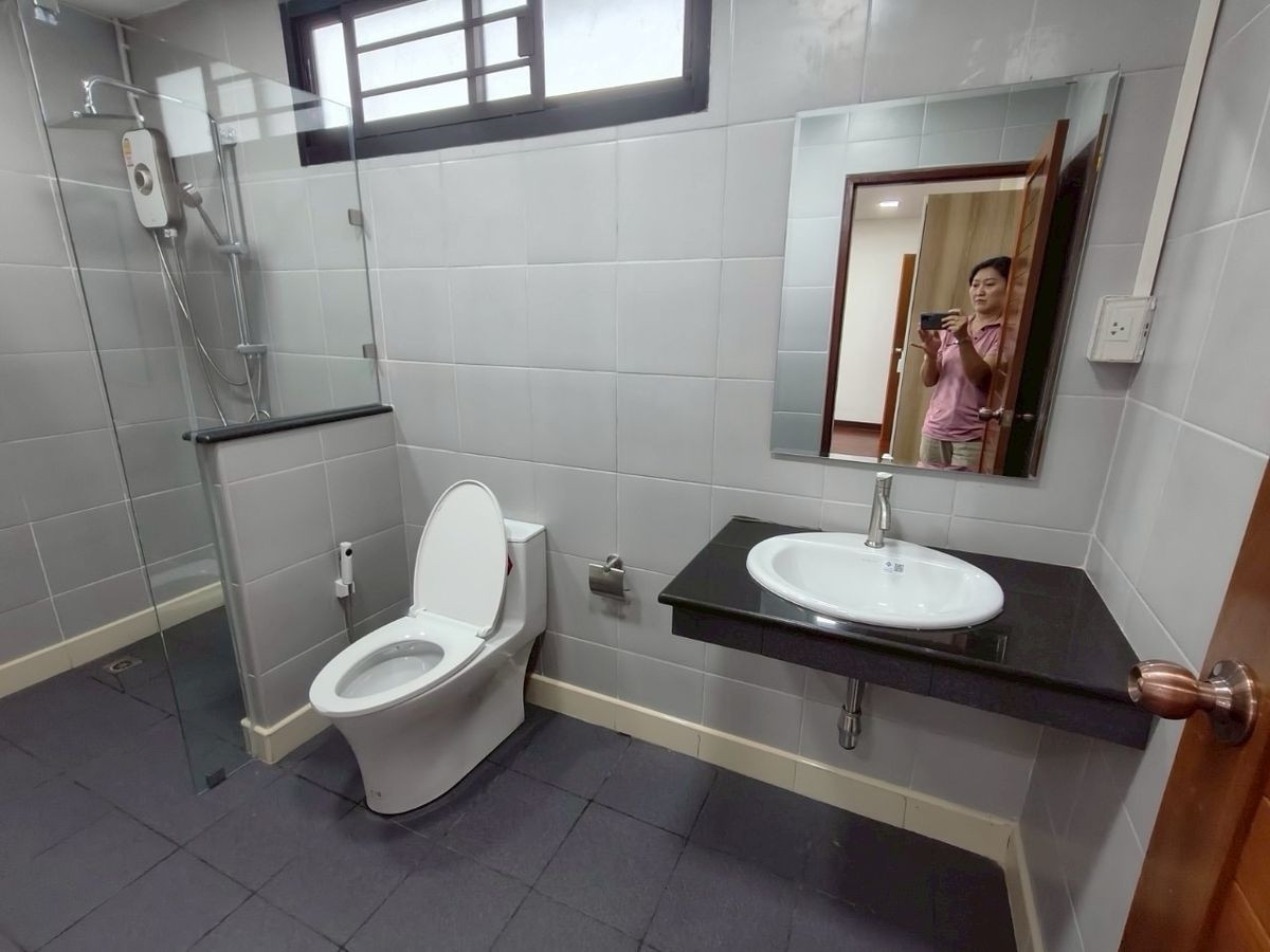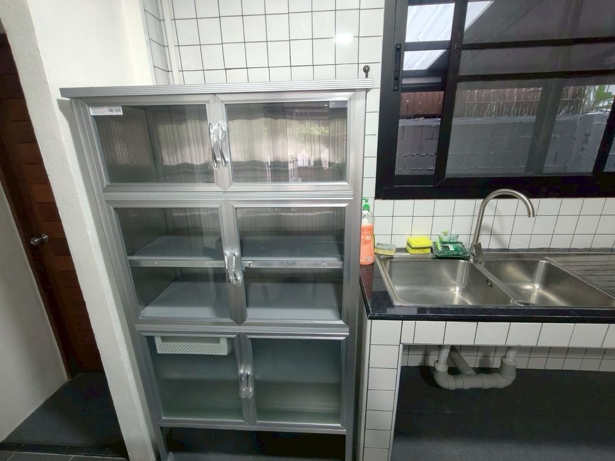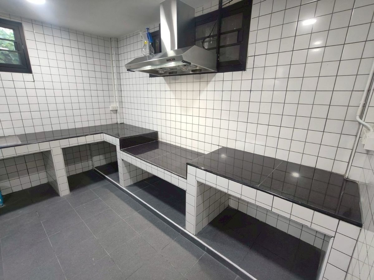 Big garden space , electric door gate, parking for 6 cars. House for rent in Sangkhom Songkhro 2-storeys house Size: 110 square wah Usable area: 250 square meters 4 bedrooms, 5 bathrooms Parking for 8