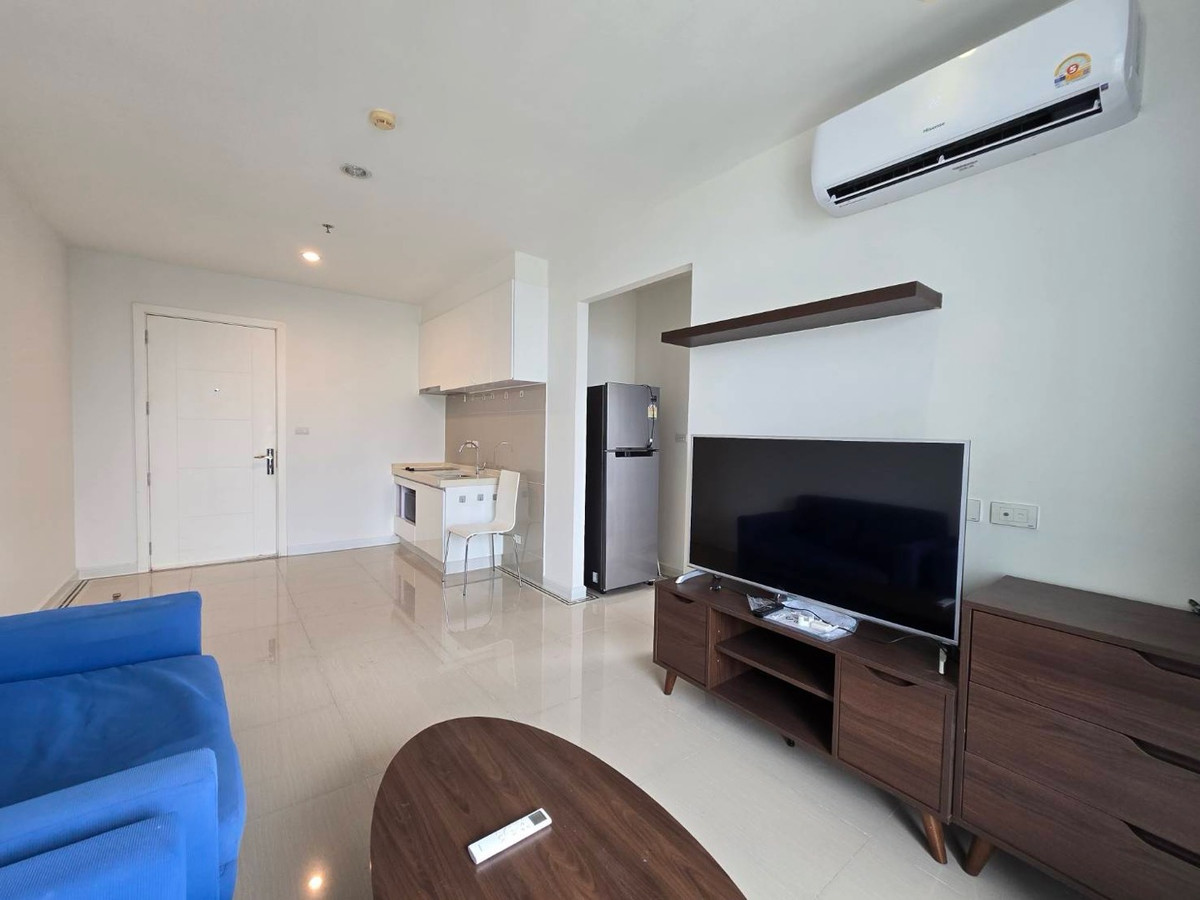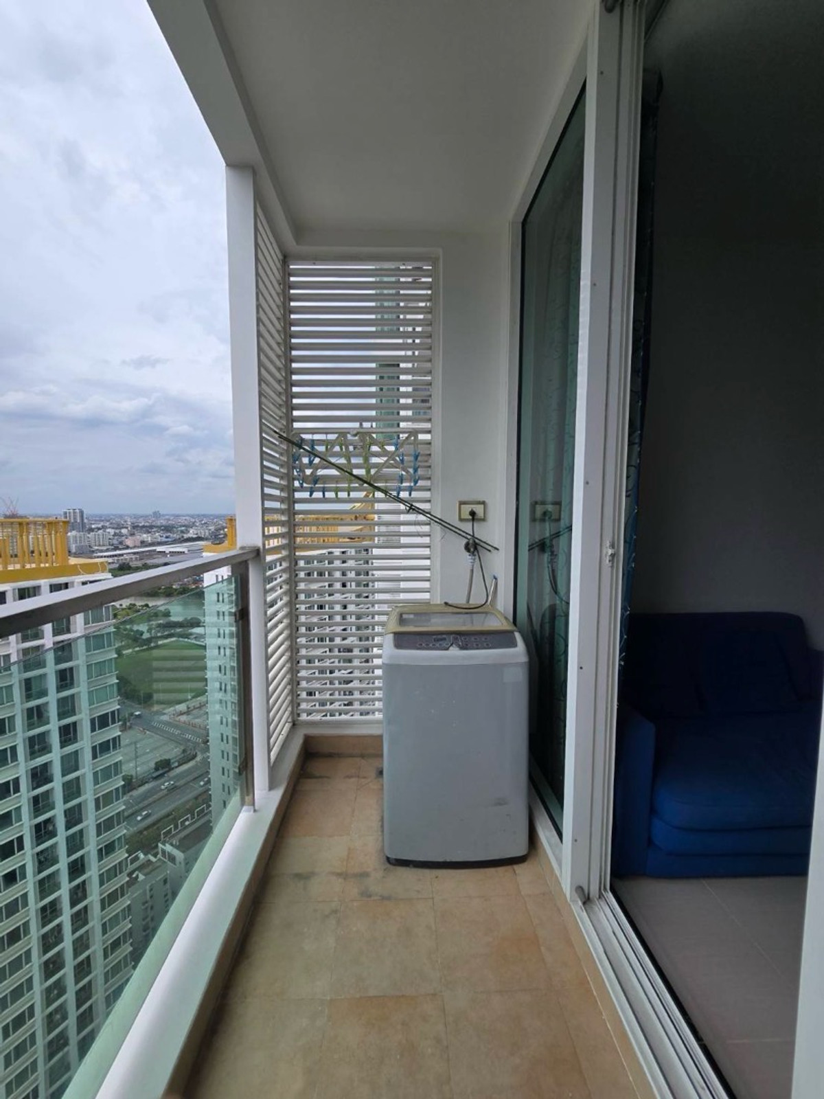 Floor: 34th Size: 42 sqm Bedrooms / Bathrooms: 1 bedroom, 1 bathroom Rent: 20,000 THB/month Furnishing & Appliances: • Fully furnished: bed, sofa, dining table, wardrobe • Appliances: air conditioner, refrigerator, washing machine, microwave, water heater View: City view from high floor Building Facilities: • Swimming pool • Fitness center • 24-hour security • Parking • Common garden Location: Close to main roads and public transport Ideal For: Single professionals or couples