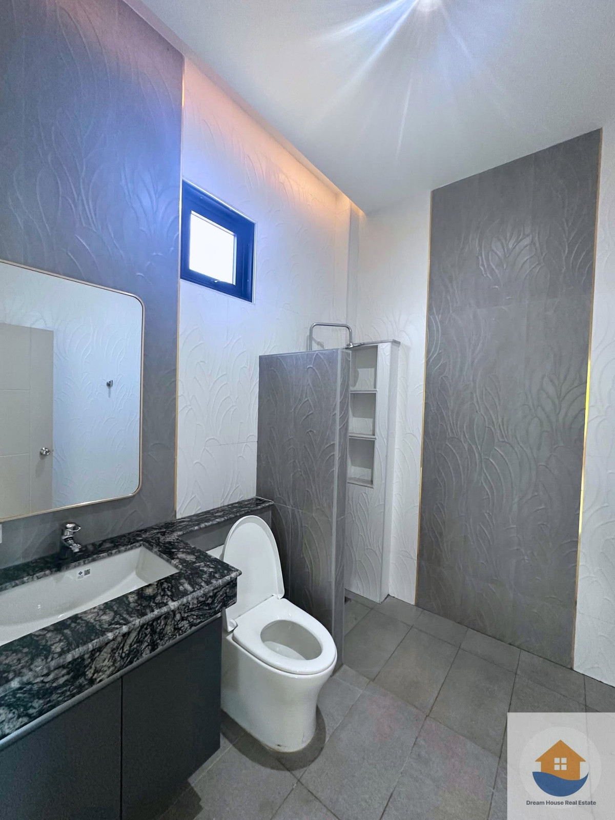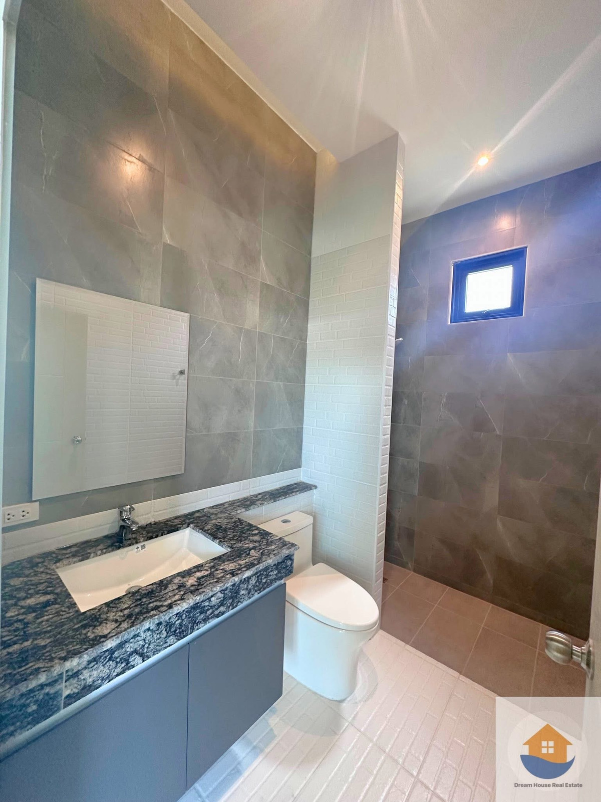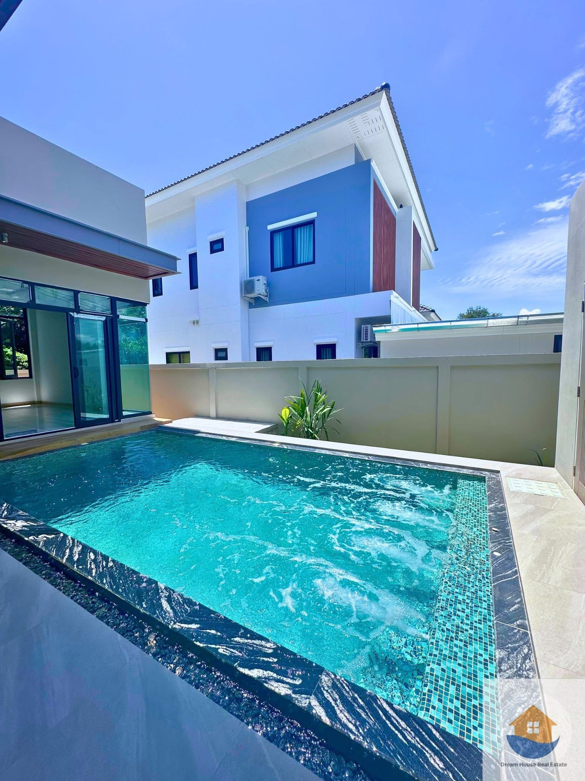 🏡 Luxurious pool villa, modern style | Huai Yai Phrom – Sri Racha ✨ Single house with swimming pool | No common fees | Private, quiet, close to the city 📍Potential location: Huai Yai Phrom – Sriracha Pool villa ready to move in on land size 100 sq m (400 sq m). Usable area is up to 240 sq m. modern design Surrounded by green space Suitable for families who want peace and privacy. 🔑 House details: 🛏️ 3 bedrooms | 🚿 4 bathrooms 🏊♀️ Salt system swimming pool (1.5 m. deep) 🍽️ Ocean style western kitchen + Thai kitchen 🚗 Parking for 2 cars 🌳 Shady with trees around the house. There is a high wall for privacy. 📌 Near important places: • Assumption College / Darasamut School • Central / Robinson Sriracha • Samitivej Hospital / Phayathai • Near Bang Phra Reservoir | Mountain view | Not crowded community 💰House price: 6.9 million baht 🎁 This price includes built-in furniture throughout the house as shown in the picture. 📄 Transfer fees and taxes are shared in half (50/50). ❌ No common fees 📲 If interested, ask for information or make an appointment to see the house. 📩 You can chat with us. 📍LINE: @dreamhouse168 Call Contact number