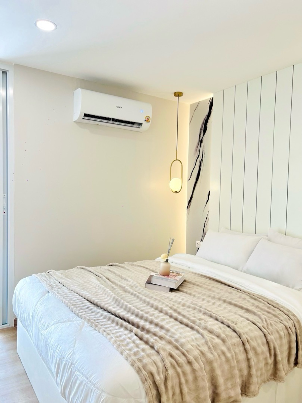 🩷Project: On Nut Place (Soi On Nut 46) Garden view room, newly renovated, built-in throughout the room, separating the room into proportions, has a kitchen zone, has a bird net (balcony) ready ☀️🍃 There is a swimming pool, 2 elevators, and parking. Type : Condo Number of floors: 8 floors Floor : 3 Usable area: 29.55 sq m. Bedroom: 1 room Bathroom: 1 room Kitchen zone divider (ready to use) There is a balcony area. 🚩Free gifts: - 1 air conditioner - Digital Door lock -Built in furniture - 5 foot bed with bedding set -Sofa can sleep, size 190 cm. - 2 wardrobe doors - All new sanitary ware -Exhaust fan -Bird netting (balcony) 🤍Facilities: - Swimming pool - 2 glass elevators - Key Card door - Security guard and CCTV 24 hrs. - Parking for 1 car, motorcycle parking 🤍Nearby places: 1. The Emporium 2. Major Ekkamai 3. Ekkamai Bus Station 4. Wat That Thong 5. Soi Thonglor 6. Seacon Square Mall 7. Big C Extra 8. Lotus 9. Paradise Park 🚆BTS Station: BTS-On Nut | On Nut Location: https://maps.app.goo.gl/PpQ8PTCkX4UBpp8G9?g_st=ipc 🌻 Contact number Anna 🌻 💸990,000- (Reserve within Nov. 2025, free transfer) #Condo ready to move in #Condo low million #Condo On Nut #Condo near the BTS