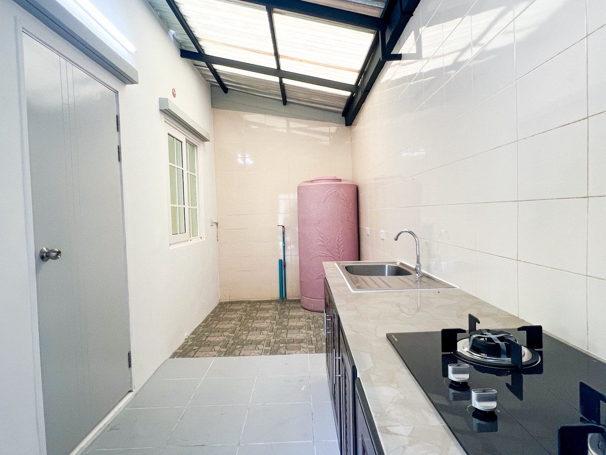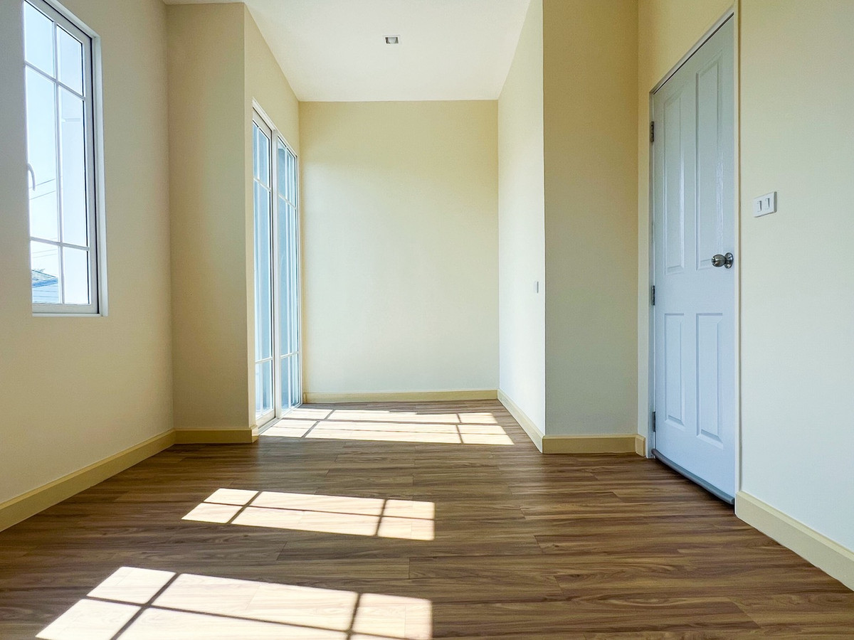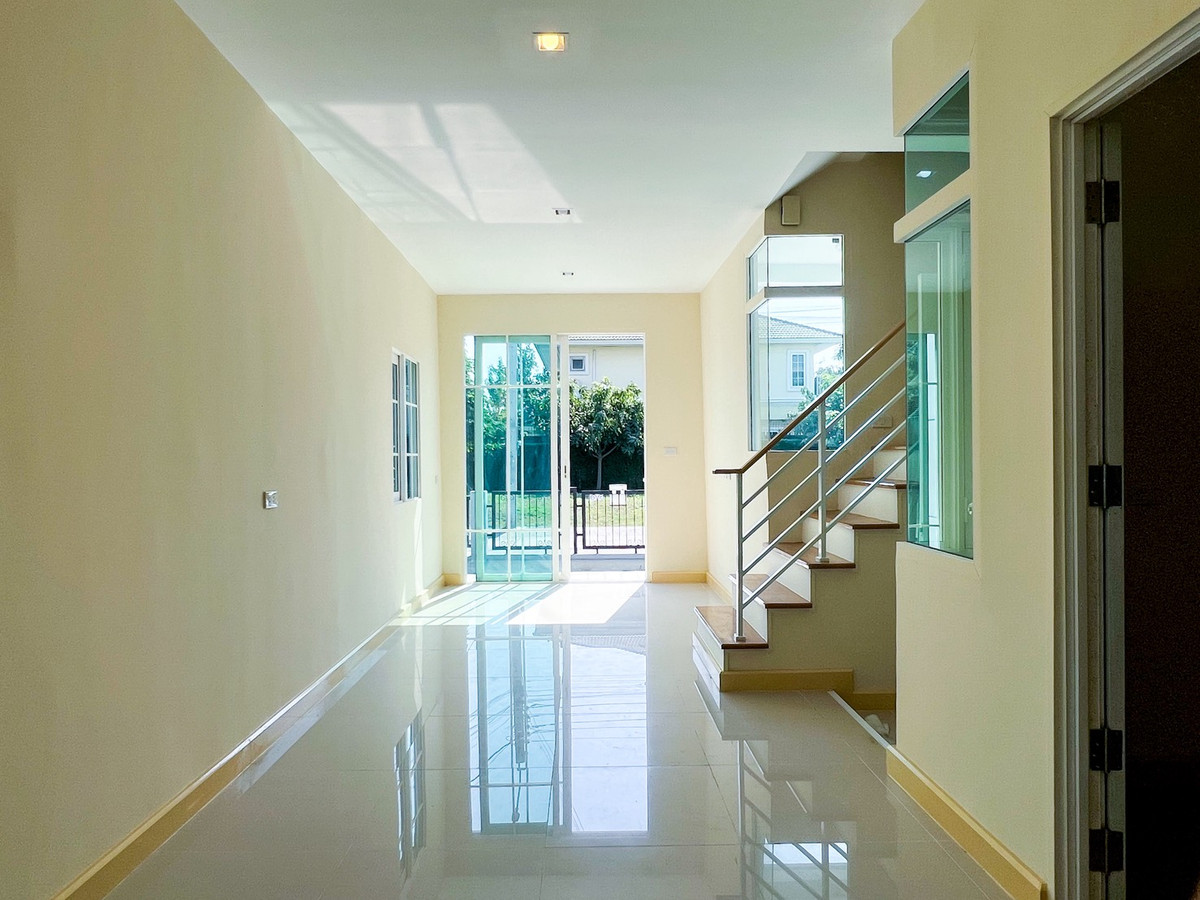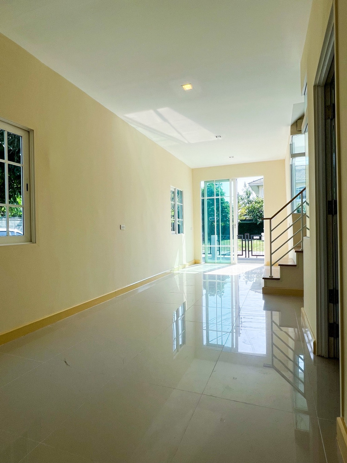 2-story townhouse for sale Behind the corner, not uncomfortable There are windows on both floors of the house. There is no house opposite. Opposite is a wide grass field. Convenient parking Golden Town Village 3 Bangna-Suan Luang Project Kanchanaphisek Road 2 large bedrooms on the 2nd floor 1 small bedroom on the ground floor 2 bathrooms complete kitchen addition Land area 22.9 sq m. Price 3.39 million baht This price does not include agents All free transfers.