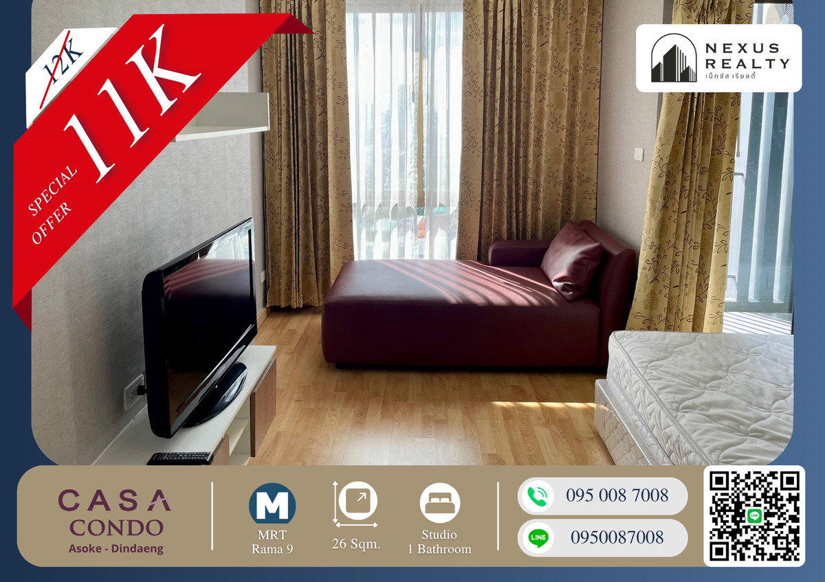 🔥🔥 Beautiful & Rare Unit!! Prime Location!! Next to MRT Rama 9 & Central Rama 9 — Casa Condo Asoke Dindaeng!! 🔥🔥 Casa Condo Asoke Dindaeng — Next to MRT Rama 9 Type: Studio Size: 26 sqm. Price: 11,000 Baht/month #NoCoAgent For more information, please contact me (Anytime) Tel: Contact number Line: https://line.me/ti/p/AnHTAfX0zZ Line ID: Contact number
