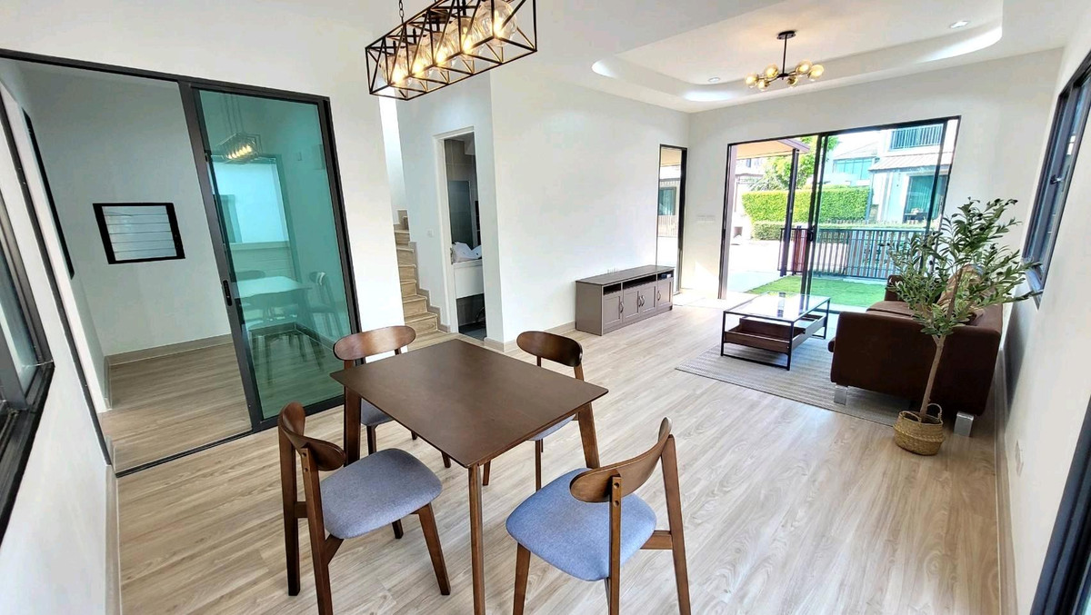2-story detached house #Habitia Orbit Village #Hathairat Ready to move in Project: Habitia Orbit Hathairat, Sansiri Project Khlong Sam Wa, Minburi, Sai Mai, near Maruay Market. Near Chatuchot Expressway 💥 Special price only 5.39 million baht (including transfer), great value 🎯Location: Hathairat Road Khlong Sam Wa Tawan Tok District, Khlong Sam Wa District, Bangkok Renovated the whole house 👉Area: 52 square meters, usable area: 170 square meters (Its a size S house, but added a kitchen behind the main house. ) 👉Common fee is 23 baht per sq m. House age 11 years 👉Facing direction: North House details: 2-storey detached house Area 52 sq m Size 3 bedrooms, 2 bathrooms, 1 wide kitchen 1 living room, parking for 2-3 cars 🎁Free!! 🎁 - Furniture, living room set, dining table - Water pump, water tank - Gas stove, ridge hood Highlights: Village next to Hathairat Road and Along Kanchanaphisek Expressway, Outer Ring Road Central: CCTV, playground, swimming pool, 24-hour security system, CCTV Nearby places: - Safari World - Big C Lam Luk Ka - Ruamrudee International School - Don Mueang Airport - Panya Indra Golf Course - HomePro Lam Luk Ka - Synphaet Ramintra Hospital Location/Area: #Hathairat #Bueng Kham Proi #Lam Luk Ka_Saimai Road If interested, contact for more details Make an appointment to visit at
