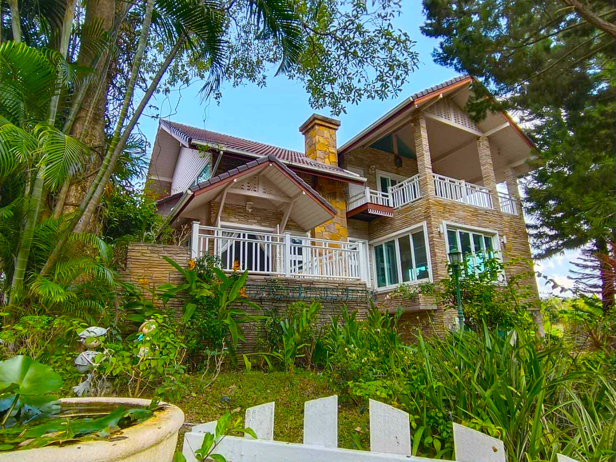 Baan Khao Yai for sale (180 degree mountain view), European vintage style, on an area of 1-0-86 rai, 7 bedrooms, 6 bathrooms, 3 floors, with a balcony for viewing. Suitable for camping in a family style atmosphere ** Property details ** Baan Khao Yai (180 degree mountain view) European vintage style 3 floors high Land area 1-0-86 rai (or 486 square wah) Total usable area over 450 square meters divided into : # Main house has 3 floors, 5 bedrooms, 5 bathrooms # Guest house has 1 floor, 2 bedrooms 1 Bathroom - Total 7 bedrooms, 6 bathrooms - 6 air conditioners - European style fireplace. With cooling chimney Really usable - Electrical appliances + complete furniture - 3-phase electricity, 100 amp electricity meter - Plant trees and gardens around the house. Shady and pleasant Electrical appliances and complete furniture: Sofa, dining table and chair set, bed, water heater, water heater meter for use throughout the house, water tank, self-dug artesian well used only in this house, kitchenware, kitchen counter, air conditioner, fan, decorative lamps both inside and outside, trees and gardens ** Highlights ** - Good location, design and atmosphere decoration. Beautiful as in the picture - Mountain view house, corner plot, 180 degree view - Shady atmosphere, pleasant, not hot in the sun - Close to tourist attractions, Khao Yai National Park, resort area and many famous restaurants _________ ** Location ** Khao Yai (180 degree mountain view), Klang Dong Subdistrict, Pak Chong District, Nakhon Ratchasima Province. 30320 Price 18,500,000 baht, great value (Transfer fee Half each **Nearby places ** - (near) many beautiful restaurants and cafes within a 15-minute drive - (near) Primo Piazza, Palio Khao Yai - (near) Farm Chokchai, The Birders Lodge - (near) FN Shopping Center, Pak Chong branch - (near) Farm Chokchai - (near) Primo Piazza (Primo Piazza) - (near) Hokkaido Flower Park Khao Yai - (near) Rancho Charnvee Country Club - (near) Scenical World Khao Yai ***************************** :: Professional consultation, call. / If interested, contact to make an appointment to see the property :: Phone: Contact number Weeramet (New) Line : @toplandsofthailand (has @ too) WhatsApp : Contact number