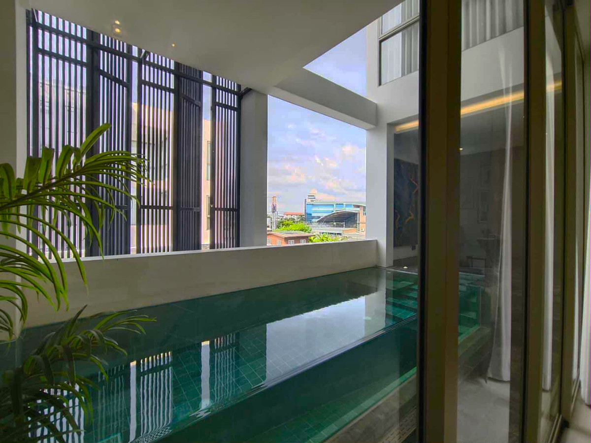 Luxury house for sale, Pool Villa Kaset-Nawamin, 4 floors high (with elevator), usable area 370 square meters, neatly decorated, luxurious, fully furnished.